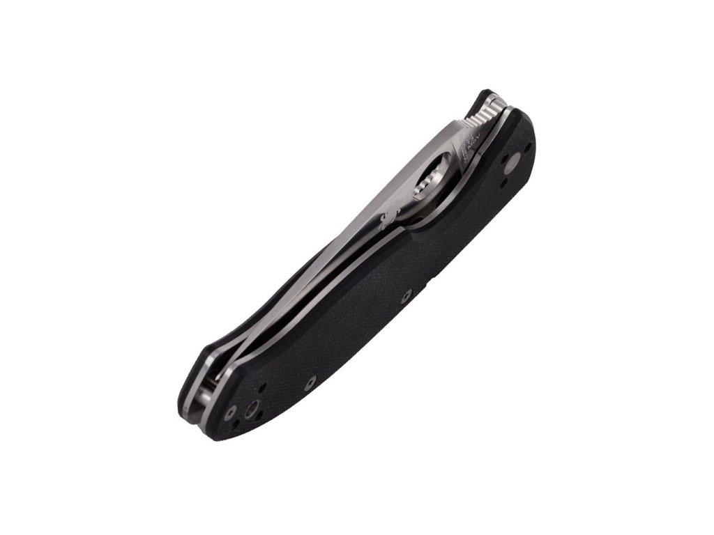 Mânerul din oțel inoxidabil și G10 negru conferă cuțitului o durabilitate ridicată. Cuțitul are o clemă care poate fi atașată în toate cele patru poziții, ceea ce îl face potrivit atât pentru utilizatorii dreptaci, cât și pentru cei stângaci. Blocarea lamei tip Liner Lock, orificiu pentru șnur.