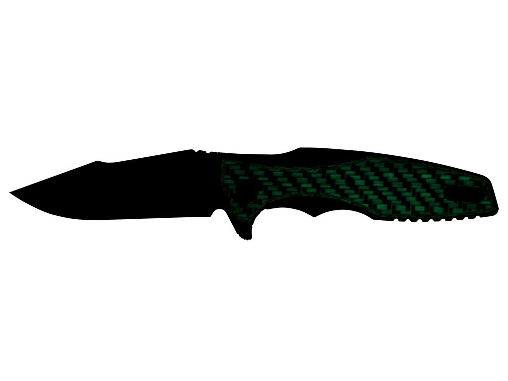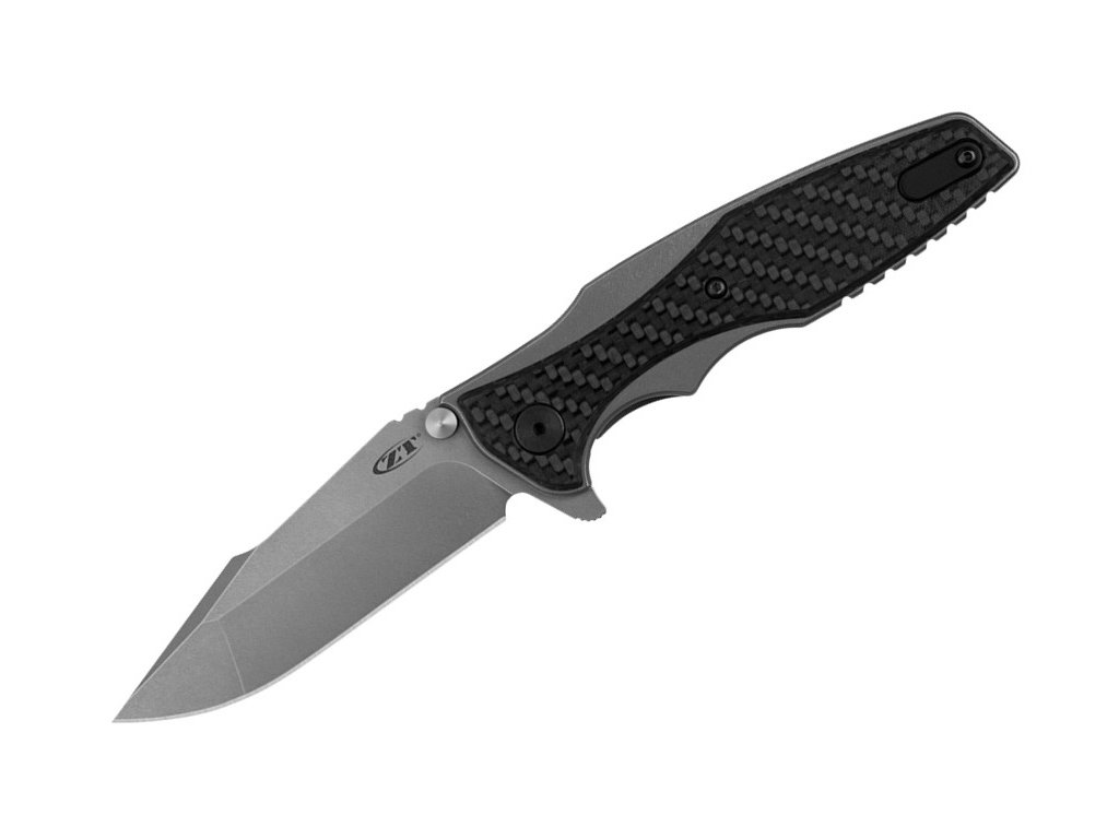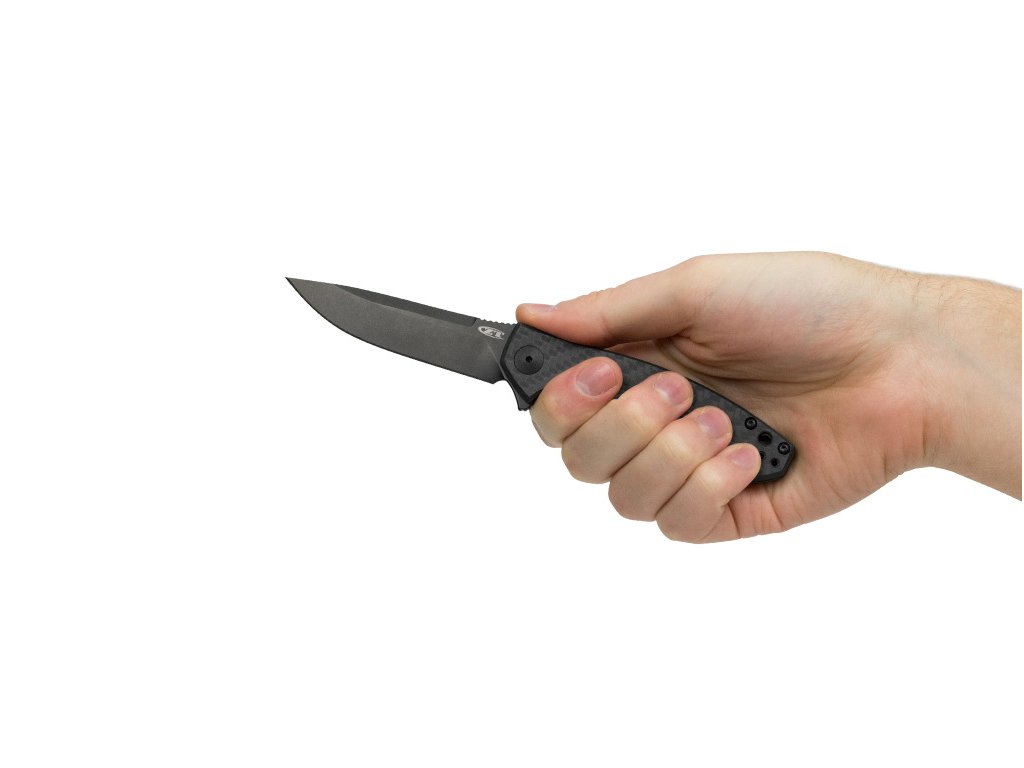 Versiune îmbunătățită a modelului ZT0393 cu mâner din fibră de carbon care strălucește în întuneric. Lama, de lungime 8,9 cm, este fabricată din oțel inoxidabil CPM 20CV exclusiv, care atinge o duritate ridicată și are o bună rezistență la coroziune și la uzură. Lama are un finsaj Working și un tăiș tip flat grind. Mâner din titan cu inserții din fibră de carbon luminescentă. Deschiderea ușoară cu un flipper a cuțitului este asigurată de sistemul KVT cu rulmenți cu bile. Are o clema pentru agățarea cuțitului.