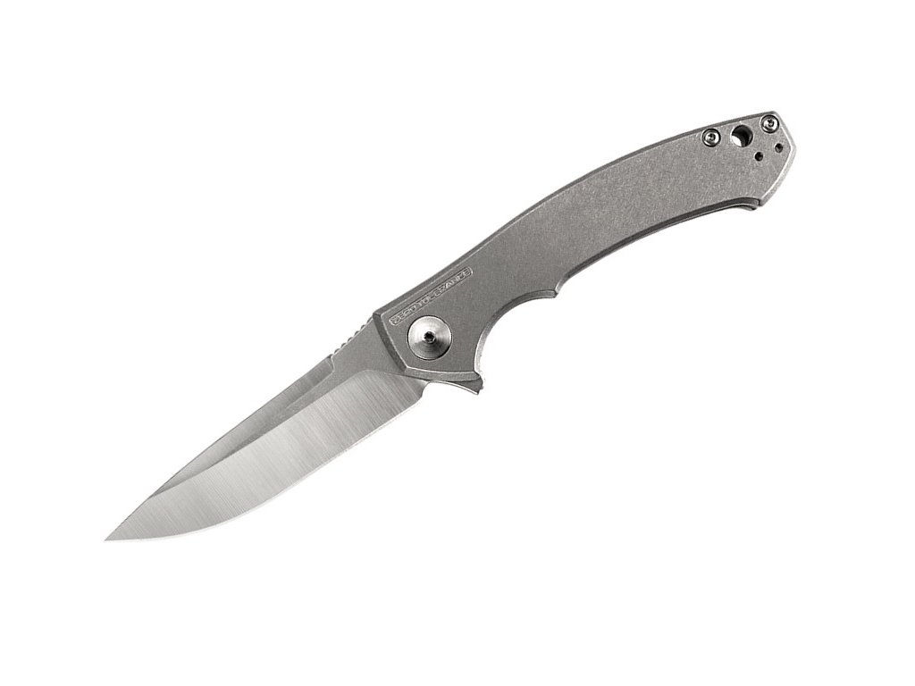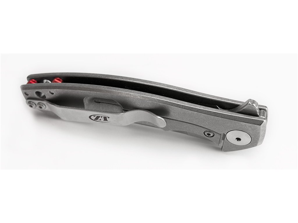 O versiune mai compactă a cuțitului legendar creat de Dmitry Sinkevich. ZT0450 are un aspect elegant și sofisticat care, în combinație cu funcționalitatea sa, îl face un cuțit EDC perfect. Lama, de lungime 8,3 cm, este fabricată din oțel inoxidabil CPM S35VN, care este extrem de rezistent, are o rezistență ridicată la coroziune și uzură. Finisajul suprafeței lamei este mat combinat cu stonewash și are o formă drop point cu tăiș tip hollow grind. Mâner din titan. Blocare a lamei tip Frame Lock. Deschiderea ușoară cu un flipper a cuțitului este asigurată de sistemul KVT cu rulmenți cu bile. Are o clemă pentru agățarea cuțitului.