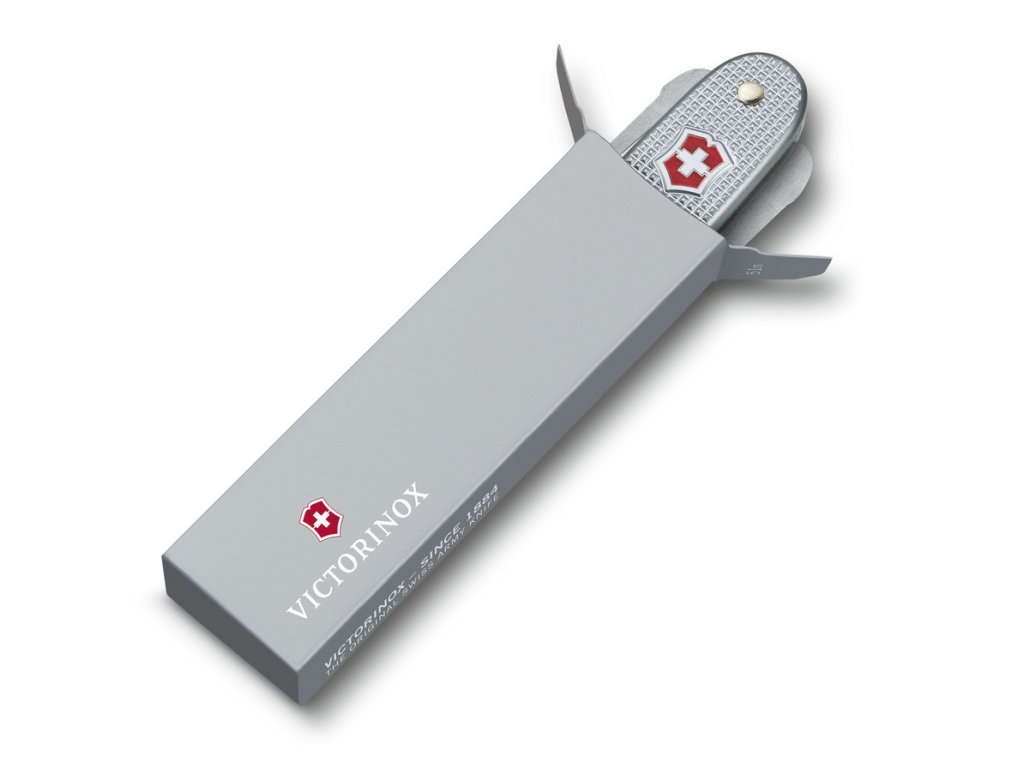 Victorinox Pioneer este un cuțit elvețian elegant și versatil, cu mâner metalic. Mânerul metalic din aluminiu anodizat oferă cuțitului un aspect interesant. Cuțitul are o lungime de 93 mm când este închis și cântărește 71 g. Are 8 funcții: