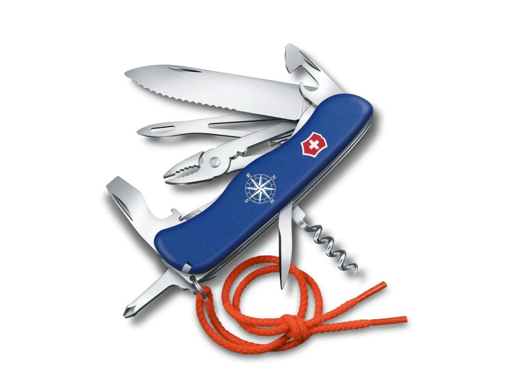 Zilele frumoase petrecute pe apă necesită un instrument pregătit pentru orice. De aceea, Victorinox a venit cu o soluție excelentă și a introdus instrumentul compact Skipper. Acest mic ajutor pune abilitățile întregului echipaj al unei nave în palma ta. Cuțitul de buzunar Skipper oferă 18 funcții, inclusiv marlin spike, un instrument dovedit și binecunoscut pentru pasionații de yachting, indispensabil atunci când lucrezi cu frânghii și noduri. Skipper are o lungime de 11,1 cm când este închis și cântărește 183 g. Instrumentul are, de asemenea, o lamă de 8,5 cm, ceea ce îi conferă o lungime totală de 19,6 cm. Mânerul este fabricat din poliamidă, cu un șnur portocaliu vizibil.