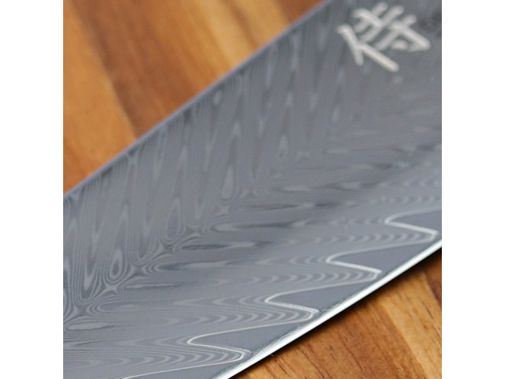 Întreținerea și curățarea: fiecare cuțit merită o îngrijire specială. Cuțitele din oțel de Damasc nu trebuie spălate niciodată în mașina de spălat vase. Spălați-le numai manual și uscați-le imediat. Nu uitați să le ungeți ocazional cu ulei. Cuțitele din oțel japonez nu trebuie utilizate în niciun caz pentru tăierea alimentelor dure și congelate. Lama s-ar putea rupe sau o parte din ea s-ar putea desprinde. Nu utilizați niciodată cuțitul ca levier și evitați orice îndoire sau lovire a lamei.