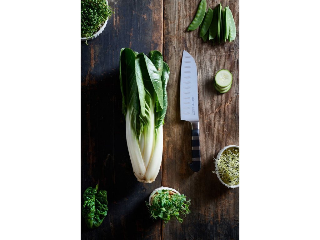 Kullenschliff - Lamă are crestături, așa-numitele kullenschliff, care reduc aderența materialului, astfel încât bucățile de alimente tăiate alunecă ușor de pe lamă.