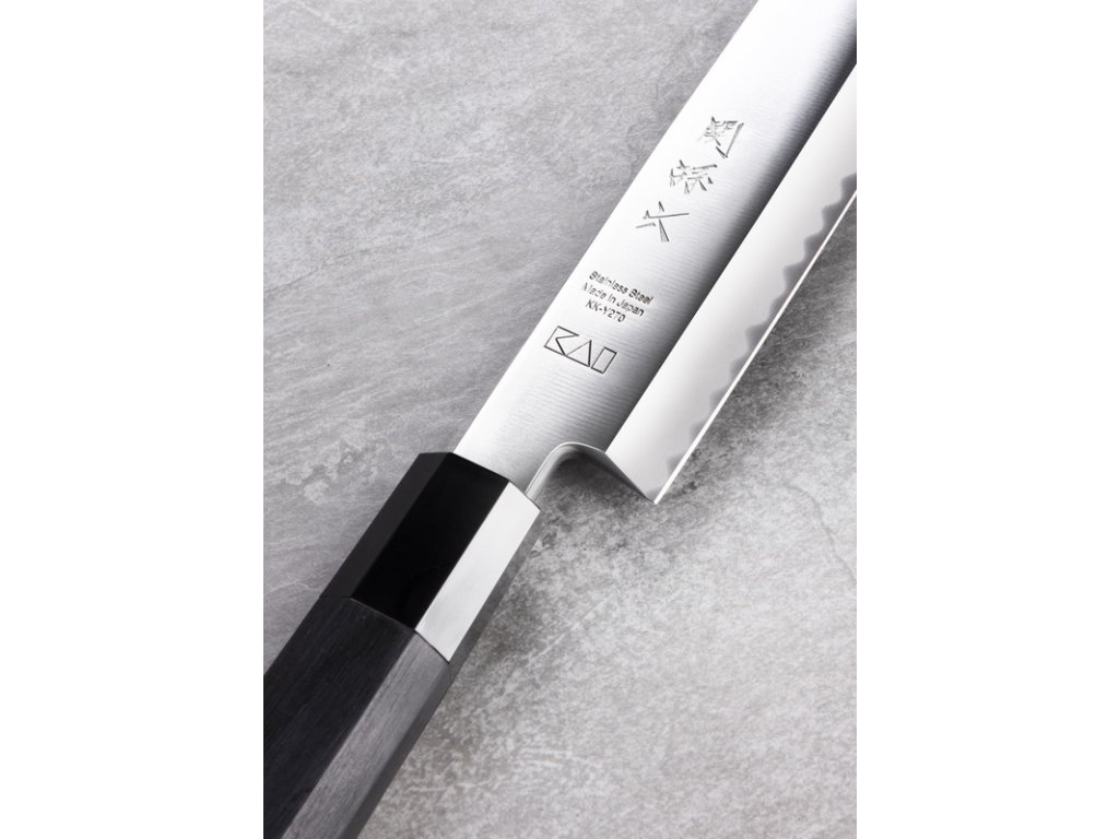 Cuțit japonez pentru bucătărie KAI tip Yanagiba cu lungimea lamei de 27 cm din seria specială de cuțite Seki Magoroku KK este numit și maestrul sushi. Forma extrem de lungă și subțire a lamei vă permite să tăiați cu precizie sau să pregătiți cu ușurință orice pește sau sushi.