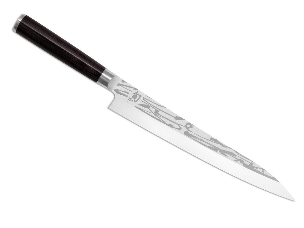 Cuțit japonez pentru bucătărie KAI tip Yanagiba din seria Shun Pro Sho cu lungimea lamei de 24 cm. Seria Shun Pro Sho oferă cuțite cu forme tradiționale japoneze cu o singură teșitură.. Identitatea japoneză este subliniată de designul elegant al lamei cu modele ornamentale. În procesele de fabricație inovatoare au fost utilizate materiale japoneze de cele mai înalte standarde și calitate. Seria de cuțite Shun Pro Sho a primit o recunoaștere specială în 2019 în cadrul German Design Award. Cuțitele sunt destinate în special utilizării profesionale, dar orice bucătar va îndrăgi tăierea cu instrumente de calitate premium.