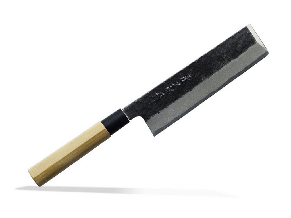 Lama de 19,5 cm lungime are o construcție Ni-Mai cu două straturi și o singură teșitură. Partea tăietoare a lamei, din oțel carbon Shirogami 2, este protejată lateral de un strat de oțel moale și rezistent. Oțelul Shirogami 2 este foarte dur, conferă cuțitului proprietăți excelente de tăiere, ascuțime ridicată și, în ciuda durității sale, este relativ ușor de ascuțit. Oțelul de pe laterale conferă lamei rezistență. Acest tip de oțel stratificat este tipic pentru cuțitele japoneze tradiționale. Suprafața lamei este așa-numita Kurouchi - o suprafață nefinisată, neagră, care se formează în timpul forjării. Această suprafață este, de asemenea, ciocănită manual (Tsuchime).