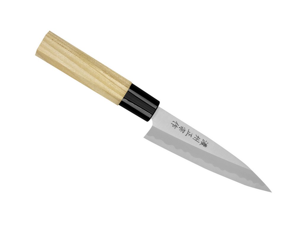 - Cuțit Deba cu lungimea lamei de 12 cm și tăiș pe o singură parte. Acest cuțit este așa-numitul cuțit ușor deba (sau Ajikiri). Comparativ cu cuțitul Deba obișnuit, este mult mai ușor, datorită lamei mai scurte și mai subțiri. În bucătăria tradițională japoneză este utilizat pentru prelucrarea peștilor mai mici. Pentru utilizarea obișnuită în bucătăria noastră este un cuțit universal excelent - ușor, manevrabil și extrem de ascuțit.