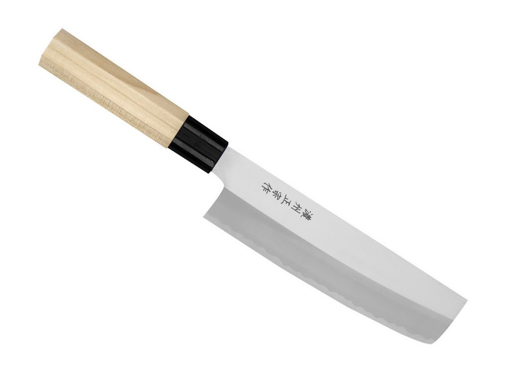 - Cuțit Usuba cu lungimea lamei de 16 cm și tăiș pe o singură parte. Usuba este excelent pentru tăierea legumelor și fructelor care se servesc crude - lama subțire și ascuțită creează suprafețe de tăiere cu o deteriorare minimă a celulelor, ceea ce minimizează pierderea de suc, schimbarea gustului sau a culorii cauzate de oxidare.