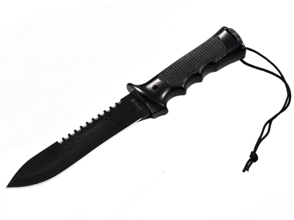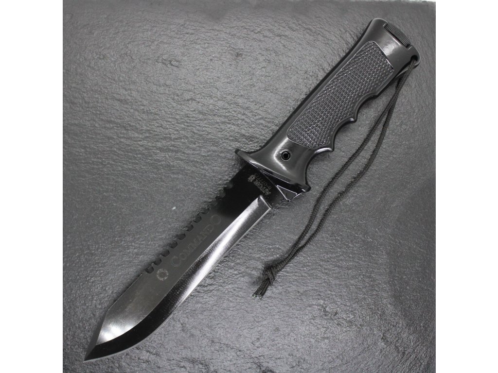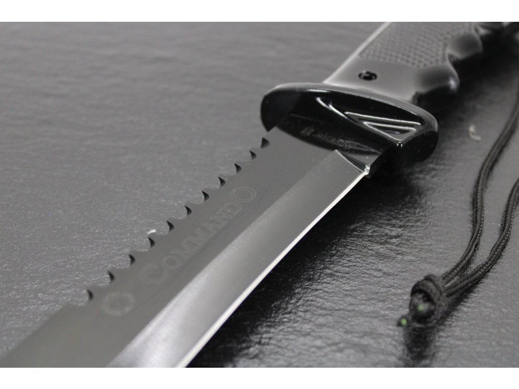 Lama sa, cu finisaj negru, este fabricată din oțel inoxidabil CrMoVa, cu o duritate de 55/58 HRC. Lungimea lamei este de 18 cm, grosimea de 5 mm. Există, de asemenea, un fierăstrău pe partea din spate a lamei. Lungime totală a cuțitului este de 31 cm și cântărește 740 g. Mânerul de culoare neagră este fabricat din metal turnat.