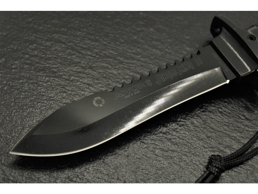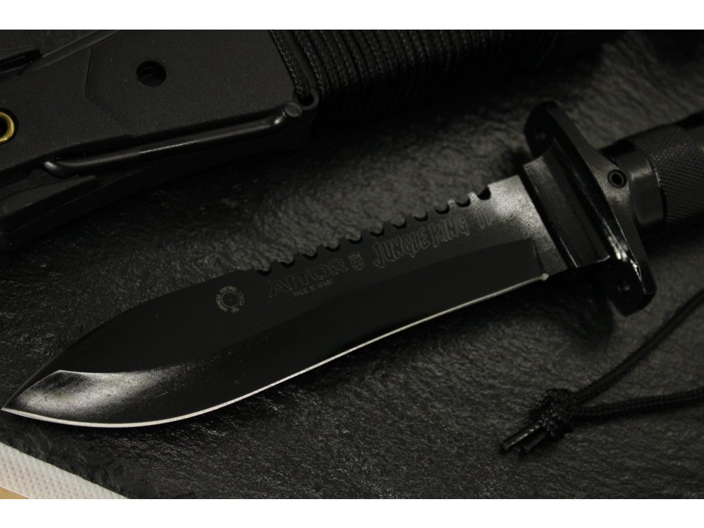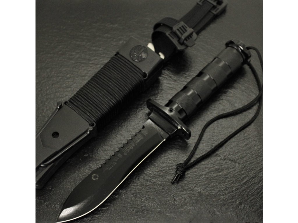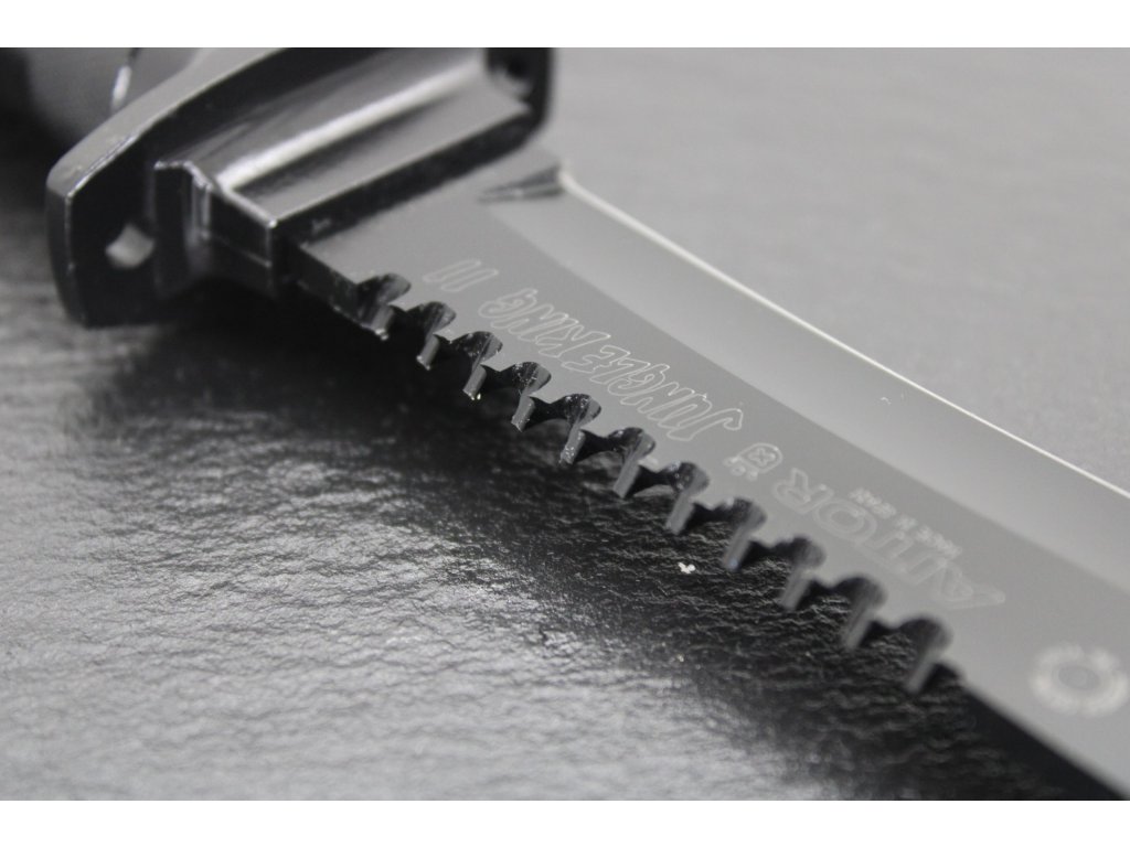 Lama cu finisaj negru, fabricată din oțel inoxidabil CrMoVa, are o lungime de 13,5 cm și o grosime de 4 mm. Oțelul are o duritate de 55/58 HRC. Lungimea totală a cuțitului este de 27,5 cm, iar greutatea totală este de 551 g. Lama are un fierăstrău pe partea din spate.