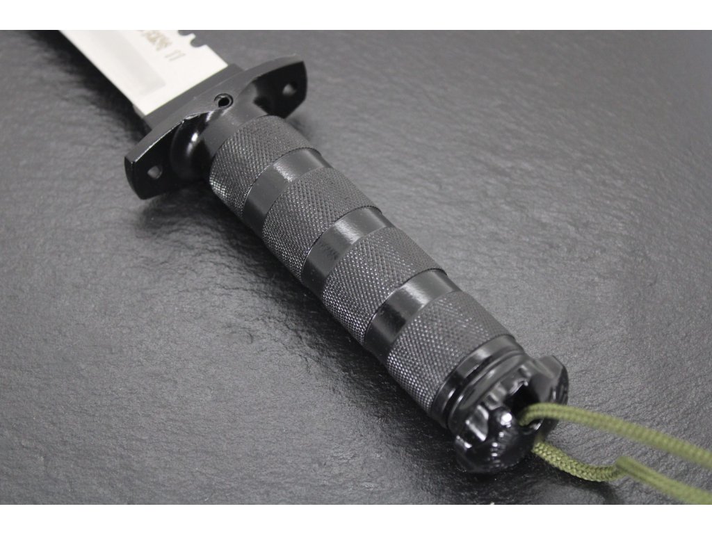 Lama cu finisaj satinat, fabricată din oțel inoxidabil CrMoVa, are o lungime de 13,5 cm și o grosime de 4 mm. Oțelul are o duritate de 55/58 HRC. Lungimea totală a cuțitului este de 27,5 cm, iar greutatea totală este de 551 g. Lama are un fierăstrău pe partea din spate.