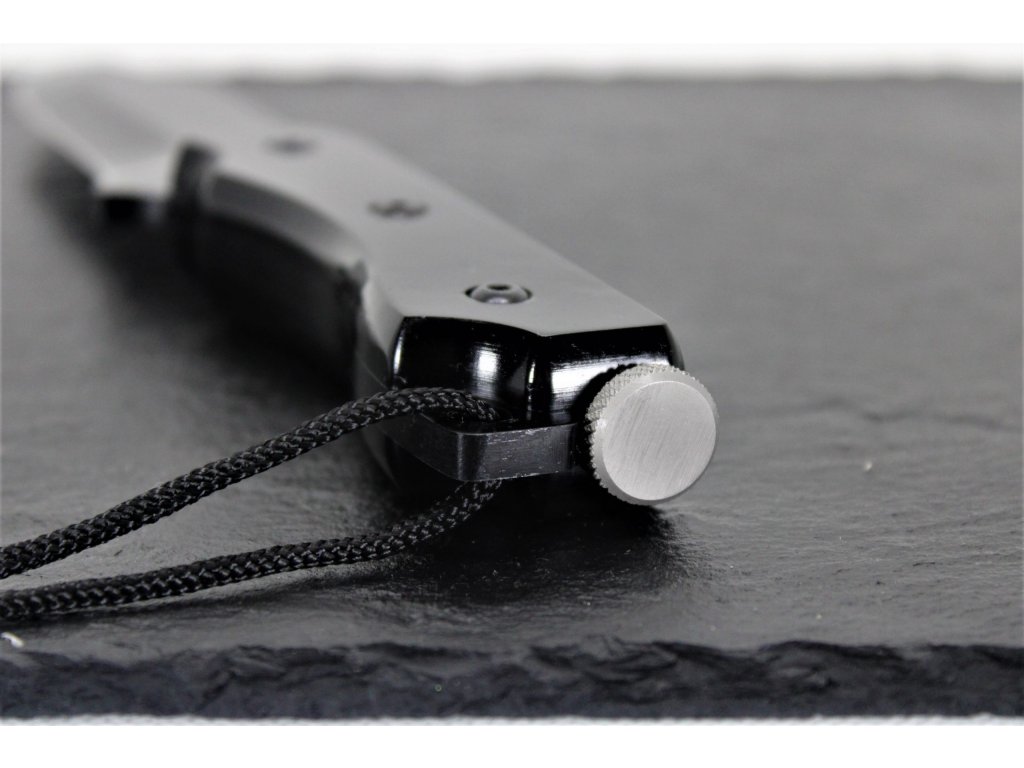 Lama sa este fabricată din oțel inoxidabil Cr.Mo.Va., cu o duritate de 55/58 HRC. Lungimea sa este de 12 cm, grosimea de 5 mm și are un finisaj negru. Lungime totală a cuțitului este de 24 cm și cântărește 593 g. Mânerul fabricat din micarta este de culoare neagră.