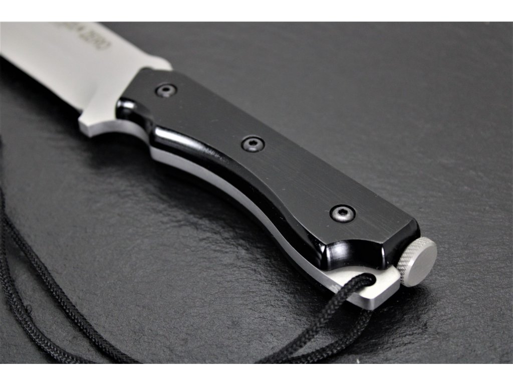 Lama sa este fabricată din oțel inoxidabil Cr.Mo.Va., cu o duritate de 55/58 HRC. Lungimea sa este de 12 cm, grosimea de 5 mm și are un finisaj satinat. Lungime totală a cuțitului este de 24 cm și cântărește 593 g. Mânerul fabricat din micarta este de culoare neagră.