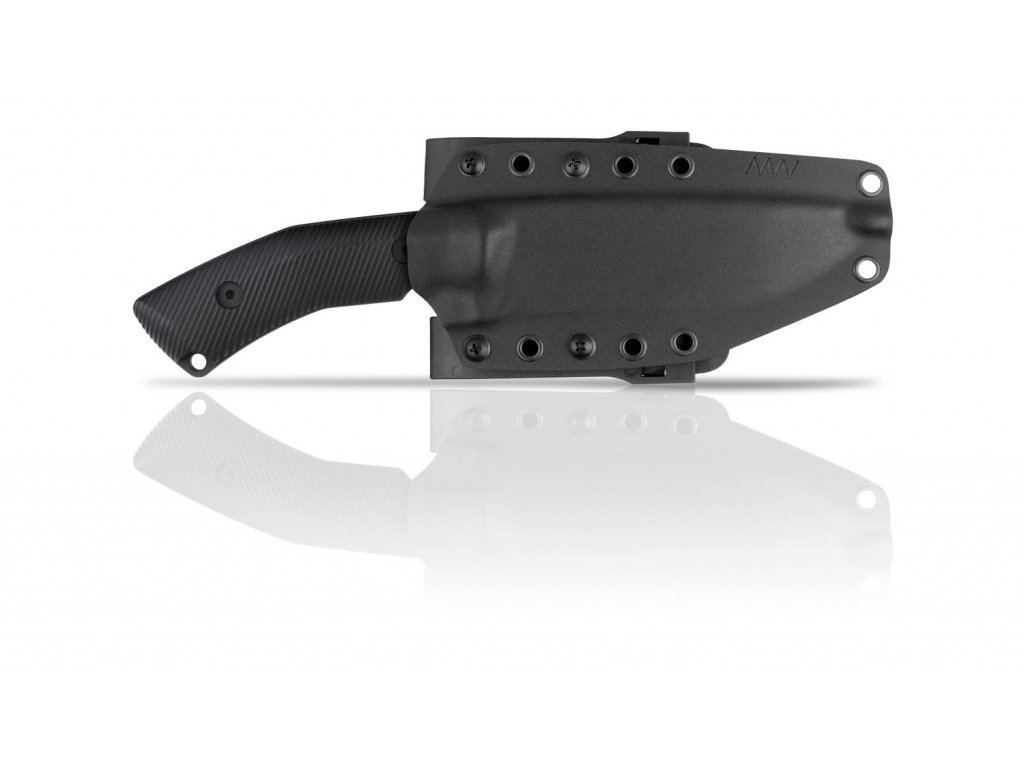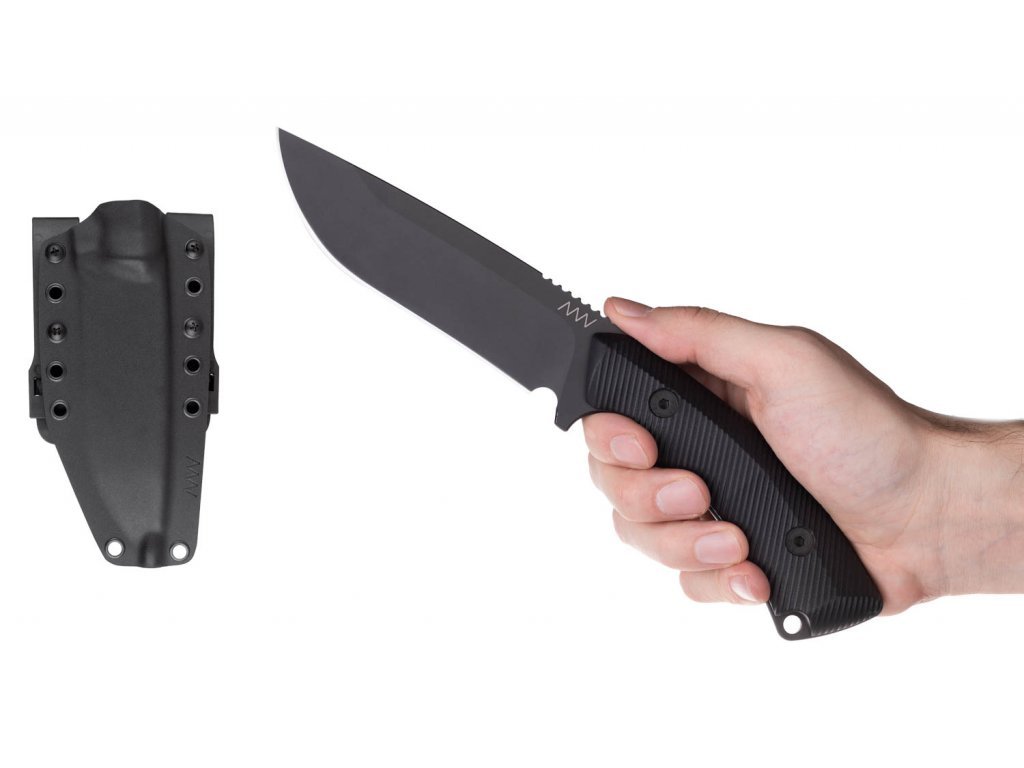 Cuțit cu lamă fixă ANV M200 HT, conceput în special pentru forțele de ordine, dar potrivit și pentru utilizatorii obișnuiți. Lama este realizată din oțel pentru unelte Sleipner, cu o duritate de 58 HRC, care rezistă bine la uzură și se ascuțește destul de ușor. Lama dreaptă are o lungime de 10 cm, o finisare DLC Black și o formă ușor încovoiată. Mânerului este fabricate din G10 negru (un material compozit solid și rezistent) cu un finisaj anti-alunecare. Teaca este din material Kydex®, cea ce o face ușoară și extrem de rezistentă. Cuțitul este livrat într-o cutie cadou de lux.