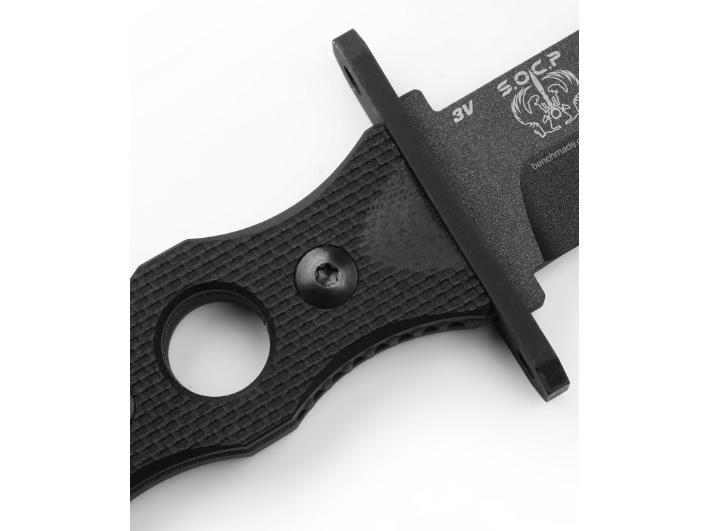 Cuțitul tactic Benchmade SOCP este un instrument defensiv conceput pentru infanterie și forțe speciale. SOCP 185SBK are o lamă și un mâner din G10 excepțional de rezistente și durabile, rezultând un cuțit subțire și, având în vedere dimensiunile sale, foarte ușor, capabil de utilizare extremă fără risc de eșec.