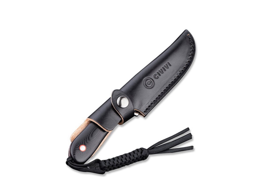 Civivi Elementum Fixed Blade este un cuțit cu lamă fixă excelent, ușor și ergonomic, potrivit pentru utilizare zilnică, vânătoare, bushcraft. Lama fabricată din oțel inoxidabil 10Cr15CoMoV cu duritatea 59-61HRC are un finisaj mat. Lama are un vârf ascuțit și performanțe de tăiere excepționale. Mânerul din G10 de culoare neagră este conturat și se potrivește perfect în mână. Elementum poate fi purtat în teaca de piele inclusă.