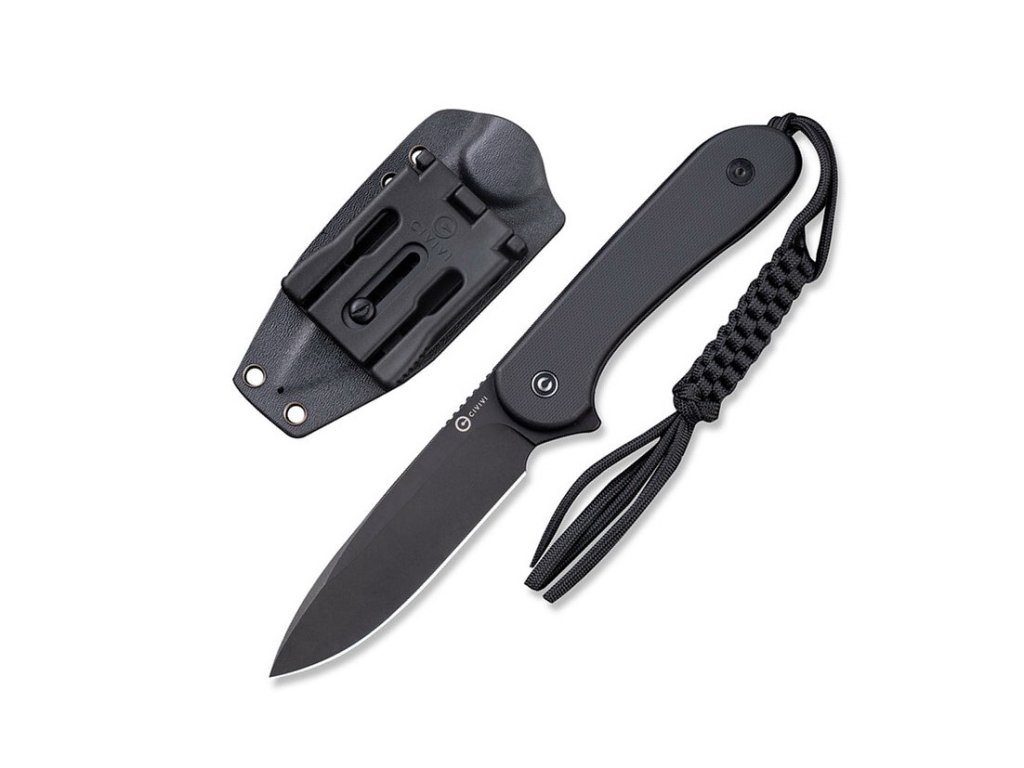 Civivi Elementum Fixed Blade este un cuțit cu lamă fixă excelen proiectat de legendarul Bob Terzuola. Lama fabricată din oțel pentru unelte D2 are un finisaj black stonewash. Acesta este un oțel pentru unelte dur care își păstrează ascuțimea pentru o perioadă foarte lungă de timp. De asemenea, este relativ ușor ascuțirii, ceea ce este util dacă folosiți cuțitul des. Lama are un vârf ascuțit și performanțe de tăiere excepționale. Grosimea mică a lamei deasupra tăișului, în combinație cu un tăiș tip flat grind, oferă acestui cuțit proprietăți de tăiere aproape de nivelul unei lame de ras. Mânerul din G10 de culoare neagră este conturat și se potrivește perfect în mână. Elementum poate fi purtat în teaca de piele inclusă. Sistemul variabil de prindere T-Clip vă permite să decideți cum doriți să folosiți cuțitul, putând fi montat orizontal, vertical sau chiar diagonal.