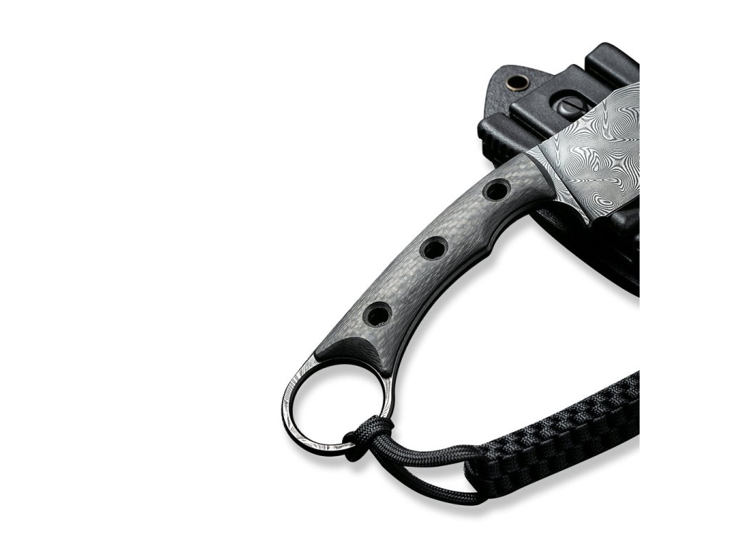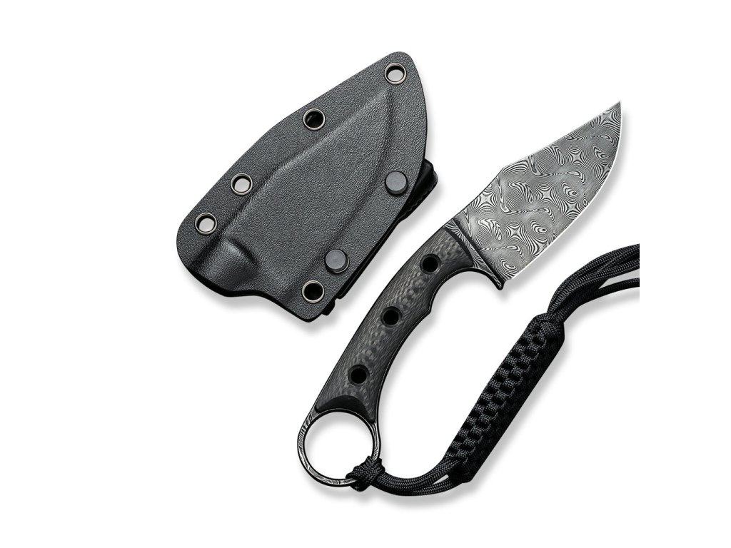 Civivi Midwatch C20059B-DS1 este un cuțit mai mic cu lamă fixă, potrivit pentru utilizare zilnică. Cuțitul multifuncțional are o lamă din oțel de Damasc cu o formă clip point și o lungime de 8,6 cm. Dimensiunea medie și funcționalitatea ridicată fac din acest cuțit un instrument excelent pentru utilizare versatilă. Mânerul din fibră de carbon oferă cuțitului un aspect original.