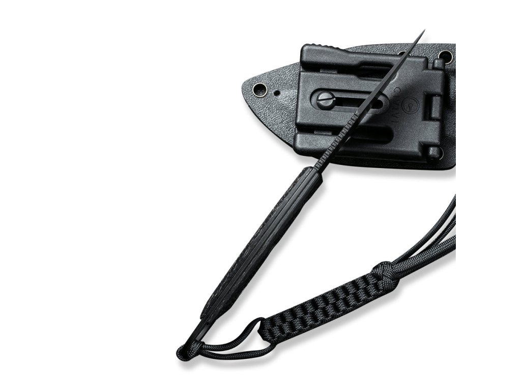 Cuțitul este livrat împreună cu o teacă T-Clip și un adaptor pentru agățare.