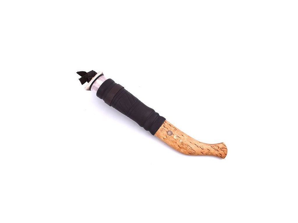 Eräpuu Puukko Curly Birch 95 nu este doar un instrument, ci o adevărată operă de artă. Mânerul este realizat cu grijă din lemn de mesteacăn alb și oferă o prindere confortabilă și sigură. Frumusețea mânerului este completată de detalii din corn, care oferă un plus de eleganță rustică, făcând din fiecare cuțit o capodoperă unică. Greutatea totală a cuțitului este de 105 g, astfel încât este ușor și mâna dvs. nu obosește repede atunci când îl folosiți. Teaca este fabricată din piele și lemn de mesteacăn alb, decorată cu inserții din coarne de ren; reprezintă un design tradițional, inspirat din modelul cuțitelor fabricate de secole de locuitorii Laponia. Cuțitul este ideal pentru camping, expediții, bushcraft. Cuțitele din Finlanda sunt populare printre vânători.