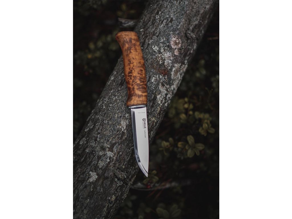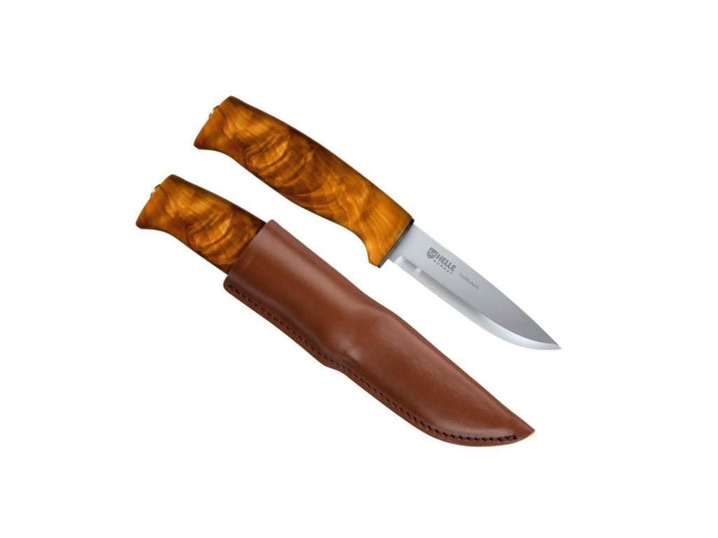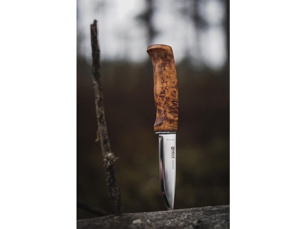 Cuțitul Helle Fjellkniven este un partener minunat pentru activități în aer liber. Lama este fabricată din oțel inoxidabil Sandvik 12C27 și are un tăiș scandi, ce conferă cuțitului o ascuțime extraordinară. Mânerul din mesteacăn creț oferă o prindere sigură, cu o gardă ce oferă protecție pronunțată pentru degete. Un cuțit versatil perfect, potrivit pentru mâini mici până la medii. Vine cu o teacă din piele de bună calitate.