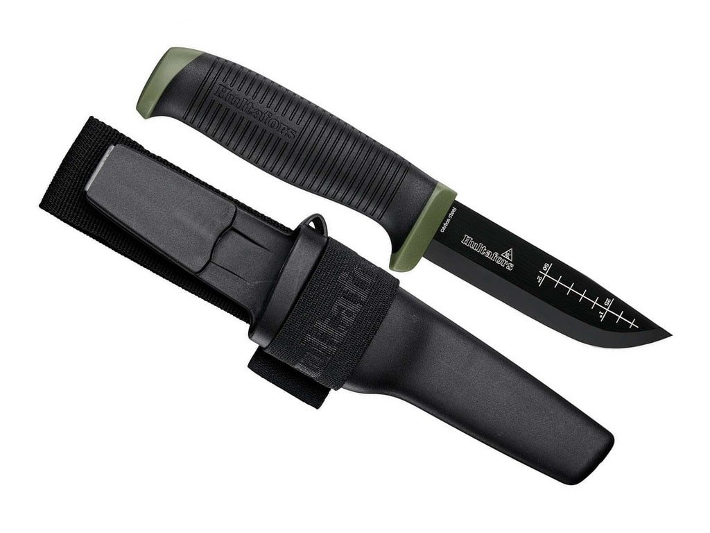 Cuțit robust și durabil cu mâner anti-alunecare, potrivit pentru sarcini solicitante în aer liber. Catarama textilă durabilă este ideală pentru curele cu lățimea de până la 80 mm și include un buzunar pentru un kit pentru aprinderea focului. Lama. cu tăiș tip scandi. este fabricată din oțel carbon japonez, de 3 mm grosime, cu duritate de 58-60 HRC. Partea din spate a lamei este rectificată pentru utilizarea ușoară a kitului aprindere foc. Cuțitul este foarte durabil deoarece stick tang-ul lamei este destul de grosier și se extinde până la ¾ din mâner.