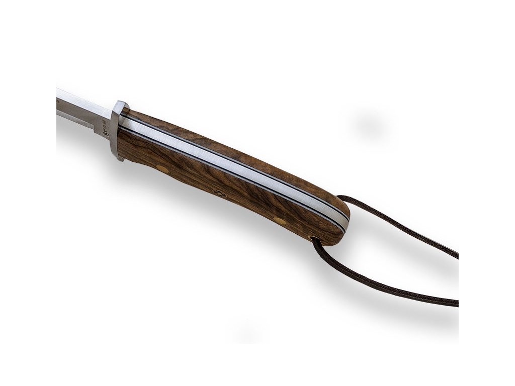 Joker Bowie CN96 este un cuțite de vânătoare mai mare, cu mâner din lemn de nuc. Lama clip point, de lungime 16 cm, este fabricată din oțel inoxidabil 1.4116 și are un finisaj satinat. Cuțite este livrat cu o teacă din piele maro de calitate superioară. Pe partea din spate a mânerului cuțite există un mic orificiu pentru atașarea unui șnur. Dacă sunteți un pasionat al activităților în aer liber și vă place să vă petreceți weekendurile în natură, cuțitul Joker Bowie este un accesoriu indispensabil pentru echipamentul dvs. Este fabricat în întregime în Spania.