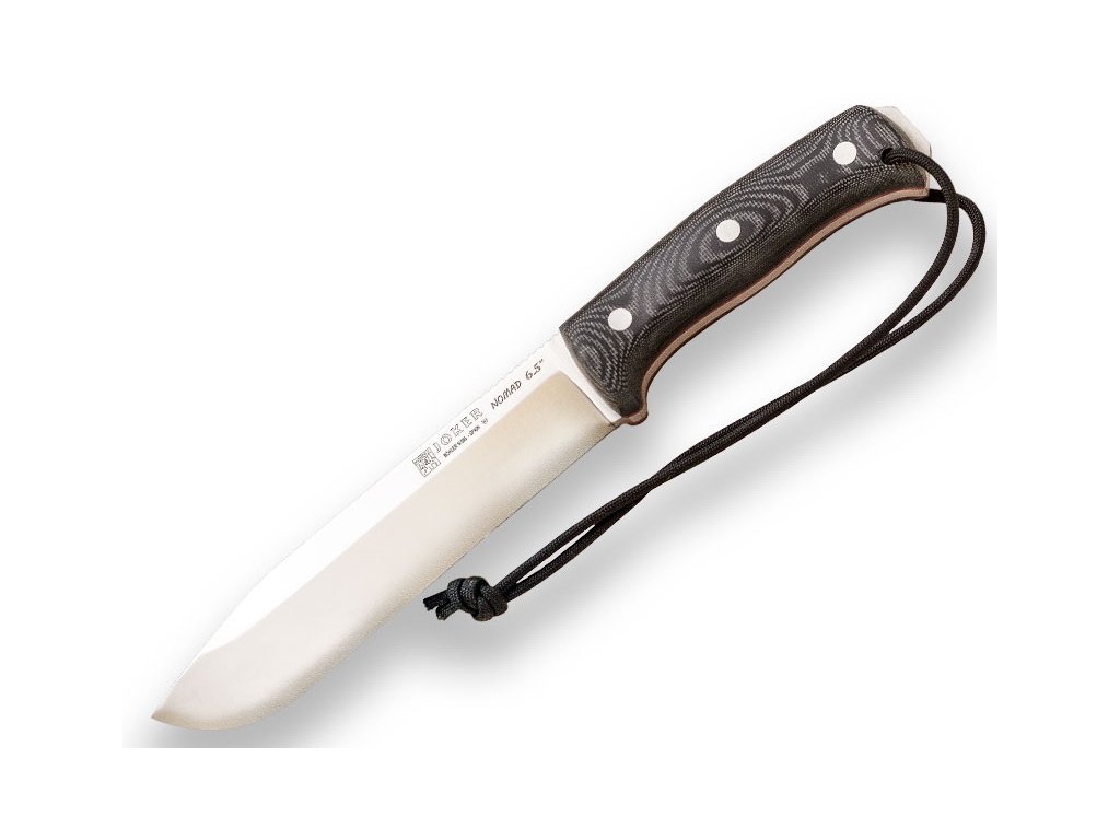 Cuțitul Joker Nomad 6.5 CM137-P pentru bushcraft are o lama fixă full tang, fabricată din oțel inoxidabil Böhler N695. Construcția full tang asigură rezistență și fiabilitate maximă. Mânerul negru din micarta este foarte confortabil, lucru pe care îl veți aprecia în special după ore lungi petrecute în sălbăticie. Lama clip point are un finisaj satinat. Pachetul include o teacă din piele de bună calitate, cu cusături durabile. Cuțitul este fabricat în întregime în Spania.