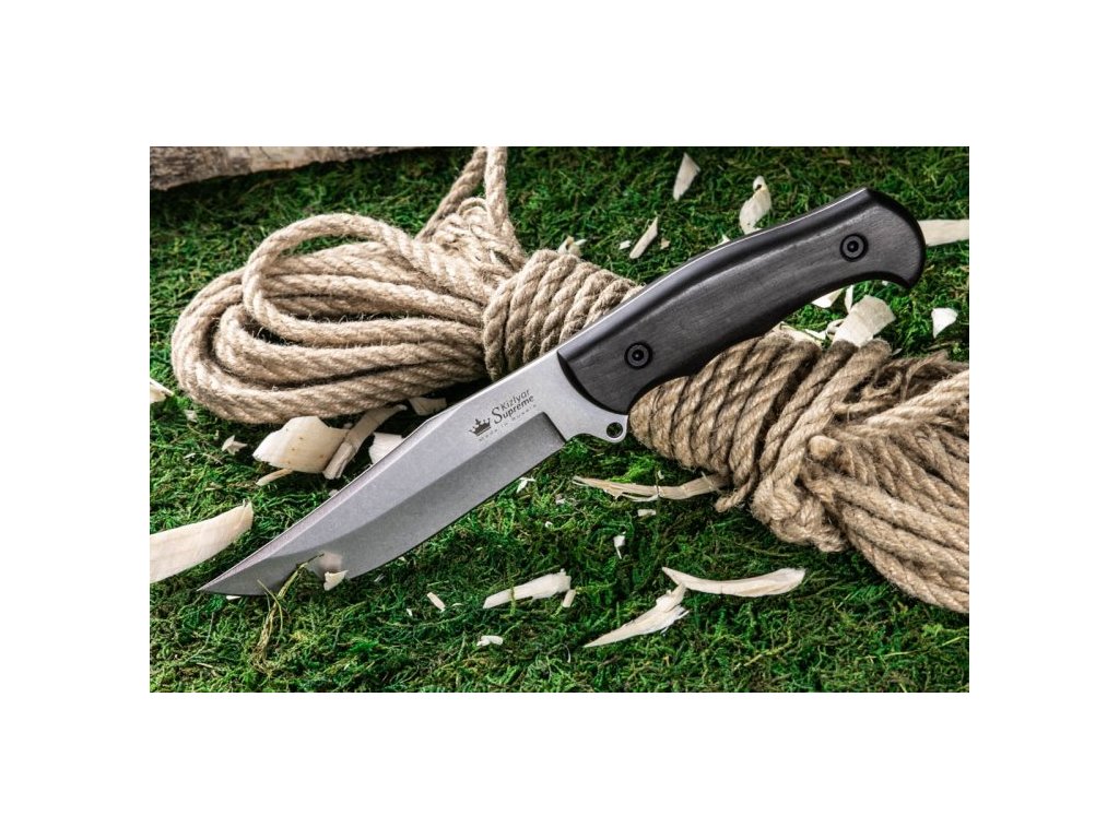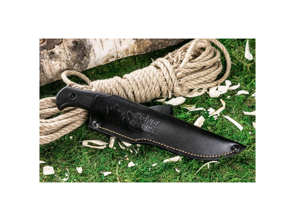 Cuțit universal pentru activități în aer liber, având forma cuțitelor tradiționale caucaziene. Construcția full tang îi asigură rezistența și fiabilitatea. Lamă lungă de 14,2 cm, din oțel pentru unelte D2, duritate 60-62 HRC, cu finisaj mat și model fin stonewash. Mâner din lemn de carpen foarte dur. Cuțitul este livrat cu o teacă din piele.