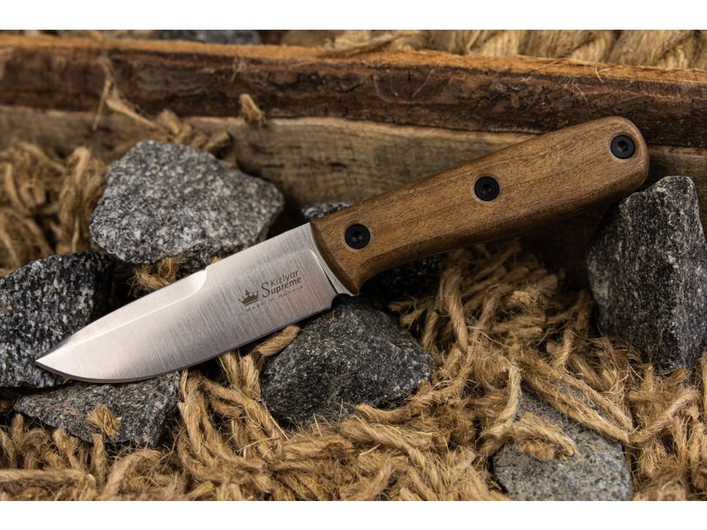 Lama este fabricată din oțel inoxidabil AUS-10Co, cu duritate 59-61 HRC, cu finisaj stonewash. Mânerul este fabricat din lemn de nuc caucazian. Cuțitul este livrat cu o teacă din piele care permite agățarea la curea.