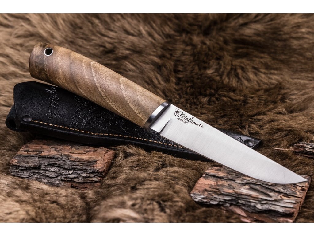 Malamute este un cuțit frumos pentru exterior și vânătoare, în forma cuțitelor nordice tradiționale. Lama este fabricată din oțel pentru unelte Niolox, duritate 61-62 HRC. Mâner realizat din nuc. Cuțitul este livrat cu o teacă din piele, care permite agățarea la curea.