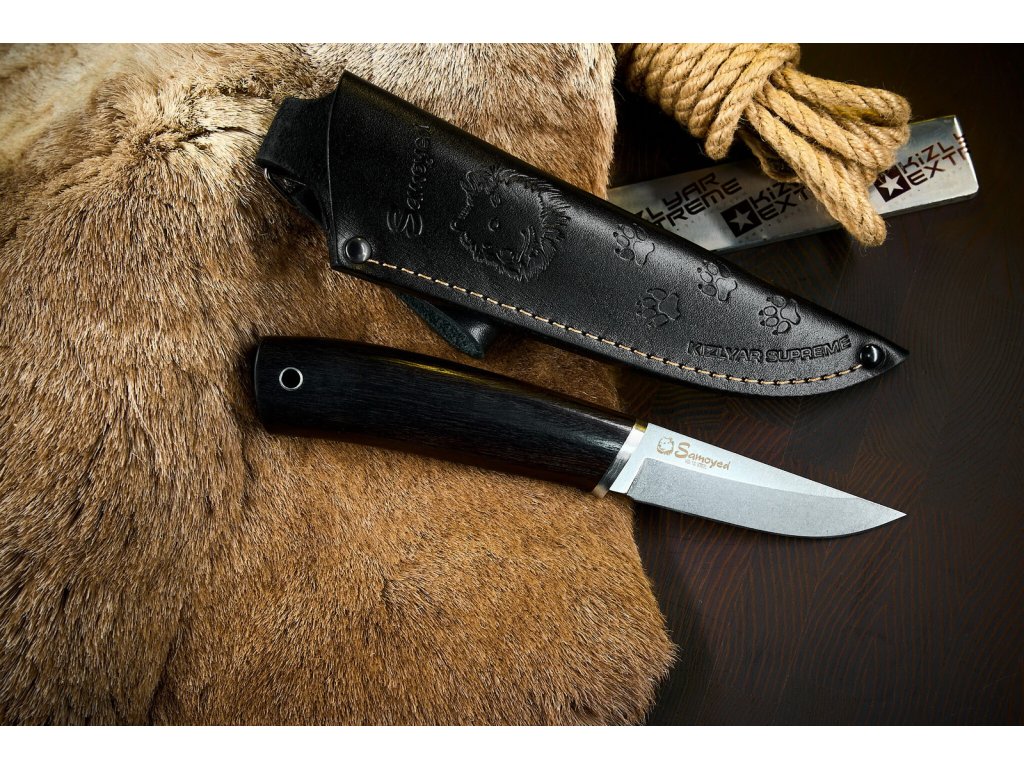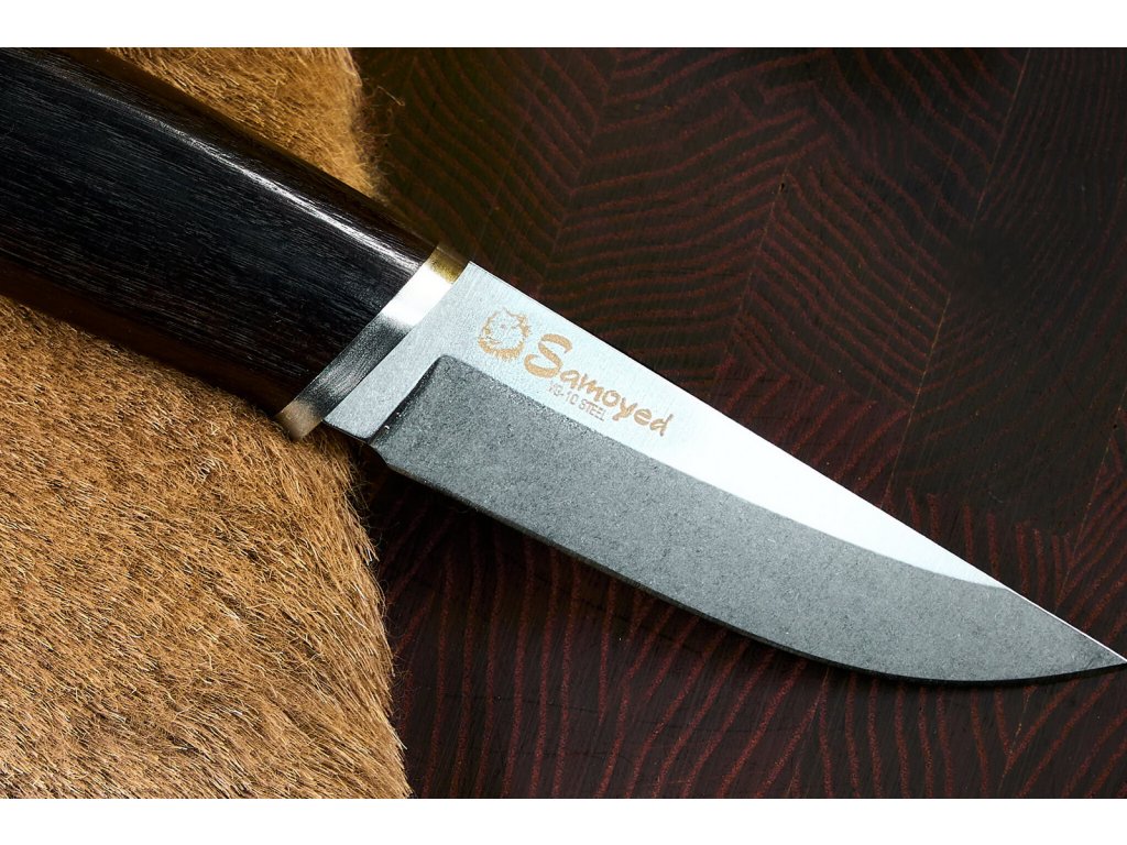 Samoyed este un cuțit frumos pentru activități în aer liber și pentru vânătoare, având forma cuțitelor nordice tradiționale. Lama este fabricată din oțel inoxidabil japonez VG-10, are o lungime de 9,2 cm și un finisaj fin stonewash. După un ciclu complex de tratament termic, VG-10 are o duritate de aproximativ 61 HRC. Își păstrează ascuțimea pentru o lungă perioadă de timp, nu necesită practic niciun fel de întreținere și este relativ ușor de ascuțit. În plus, lamă a fost supusă unui tratament criogenic, care îi îmbunătățește și mai mult proprietățile și crește rezistența muchiei la ciobire.