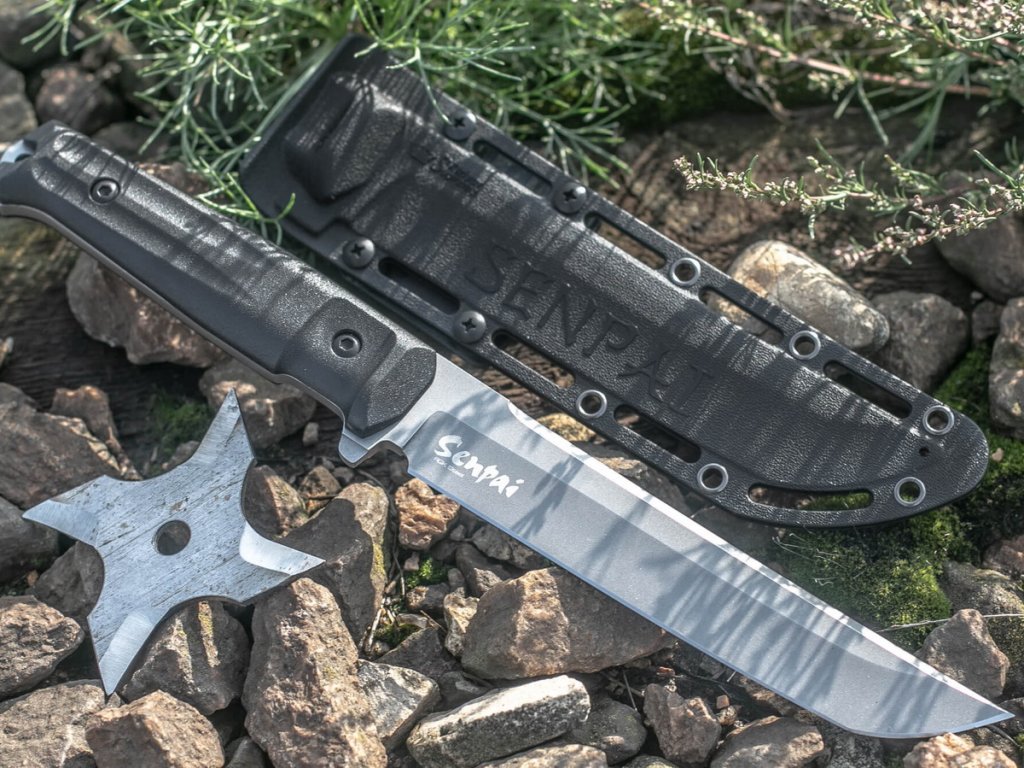 Cuțit Kizlyar Supreme Senpai mare pentru activități în aer liber cu construcție full tang. Lamă de lungime 17,1 cm, fabricată din oțel pentru unelte PGK, duritate 62-63 HRC, cu finisaj tacwash. Mâner realizat din două straturi - stratul inferior este din plastic ABS, care asigură rezistența mânerului, stratul superior al mânerului realizat din Kraton, care este plăcut la atingere și în același timp foarte durabil. Cuțitul este livrat cu o teacă din plastic compatibilă cu sistemul Molle.