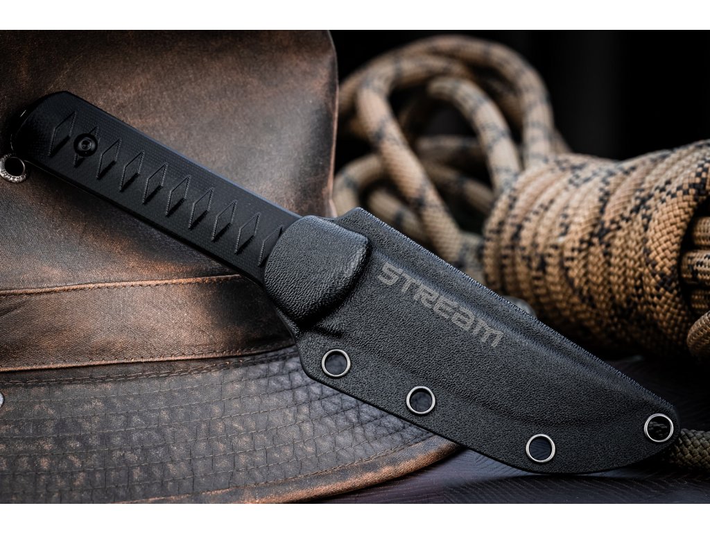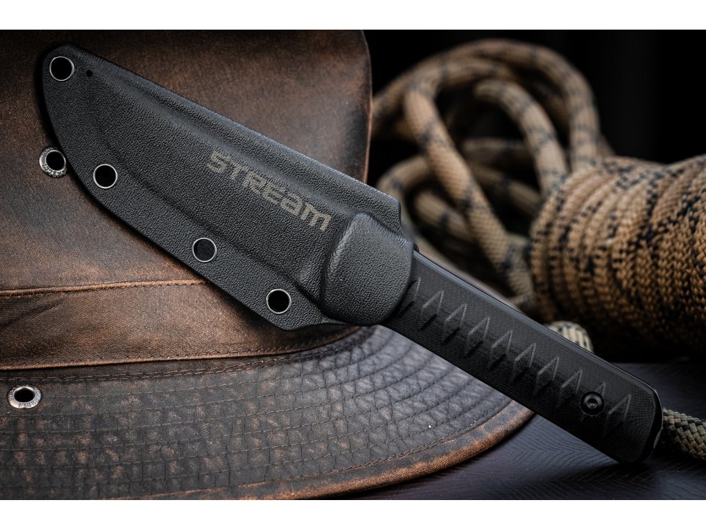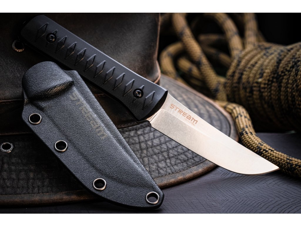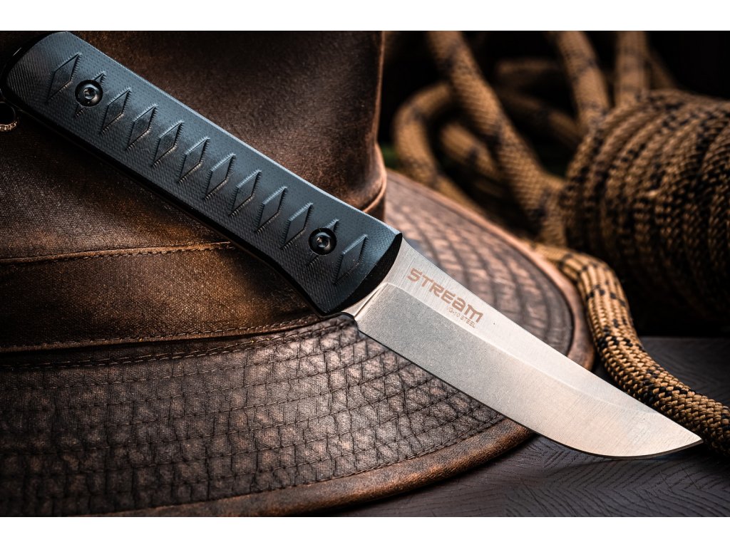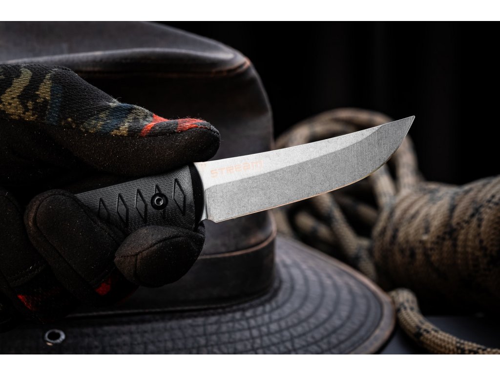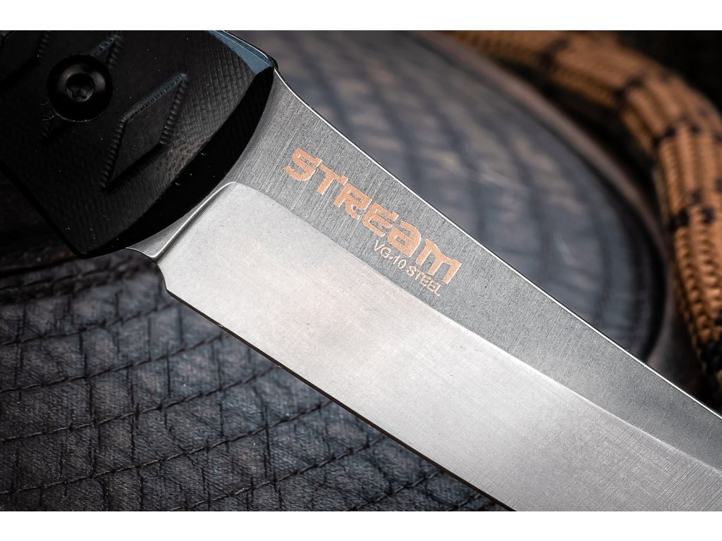 Stream este un cuțit compact cu lama fixă, cu o formă inspirată de cuțitele japoneze. Potrivit pentru activități în aer liber, în pădure, dar și pentru uz zilnic. Lama este fabricată din oțel inoxidabil japonez VG-10, are o lungime de 8,9 cm și un finisaj fin stonewash. După un ciclu complex de tratament termic, oțelul VG-10 are o duritate de aproximativ 61 HRC. Își păstrează ascuțimea pentru o lungă perioadă de timp, nu necesită practic niciun fel de întreținere și este relativ ușor de ascuțit.
