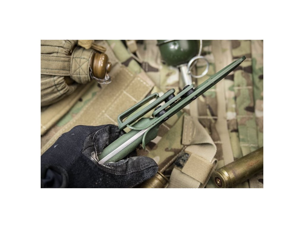 Cuțit tactic cu o construcție full tang de la producătorul Kizlyar Supreme. Dimensiunea și forma cuțitului îl fac un cuțit universal pentru utilizarea zilnică în aer liber. Lamă de lungime 11,9 cm, din oțel AUS-8, duritate 57-59 HRC. Mâner realizat din două straturi - stratul inferior este din plastic ABS, care asigură rezistența mânerului, stratul superior al mânerului realizat din Kraton, care este plăcut la atingere și în același timp foarte durabil. Cuțitul este livrat cu o teacă din plastic compatibilă cu sistemul Molle.