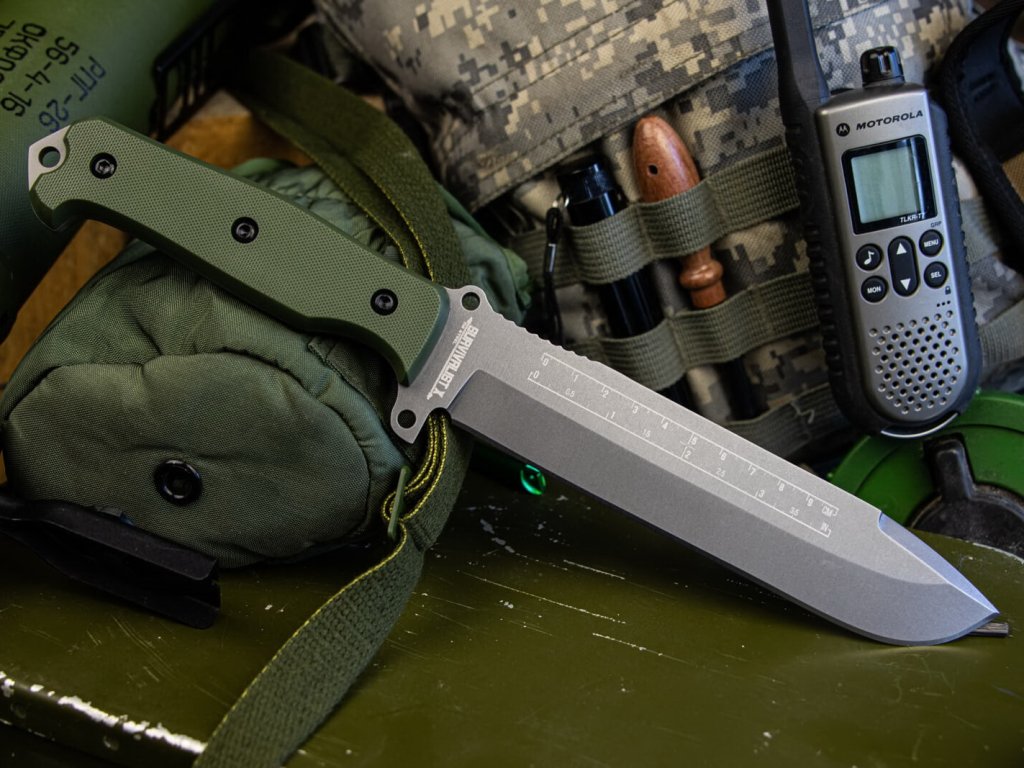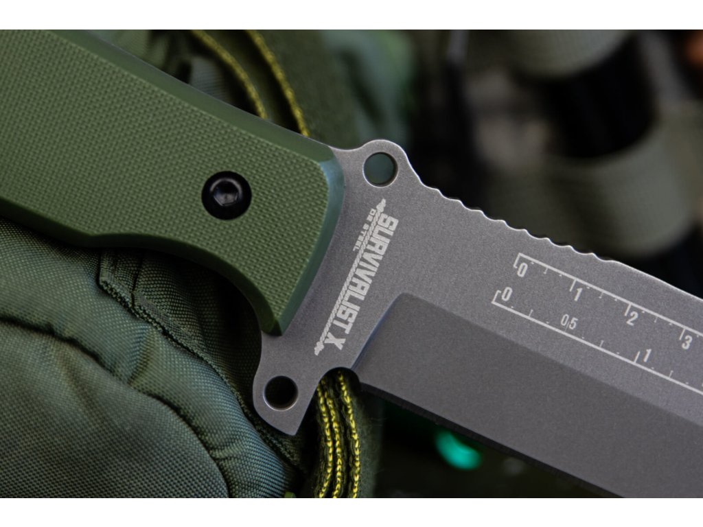 Survivalist X este un cuțit cu lama fixă, conceput pentru supraviețuirea în sălbăticie. Construcția sa full tang asigură rezistență și fiabilitate, iar lama sa robustă poate face față chiar și celor mai dificile sarcini. Lama este fabricată din oțel pentru unelte D2, cu duritate 59-61 HRC, cu finisaj TacWash și tăiș flat grind. Partea din spate a lamei are un tăiș fals conceput pentru lucrări grele, tăiere etc.