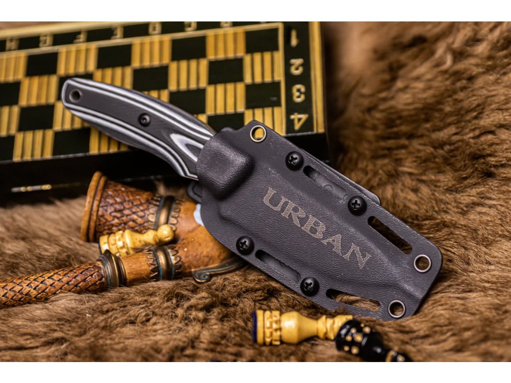 Cuțit pentru activități în aer liber, mai mic, universal. Construcția full tang îi asigură rezistența și fiabilitatea. Lamă fabricată din oțel D2, duritate 60-62 HRC, cu finisaj stonewash. Mâner realizat din Micarta - material compozit modern, foarte durabil și plăcut la atingere. Cuțitul este livrat cu o teacă din kydex.
