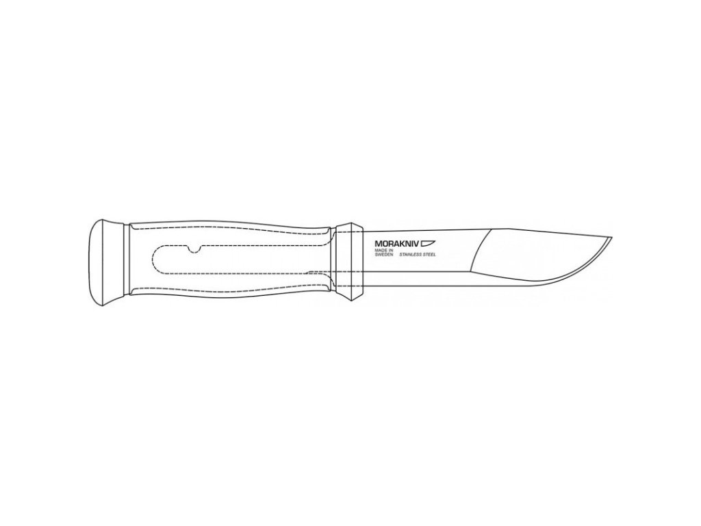 Model tradițional de cuțit Mora, popular printre pasionații de activități în aer liber, vânători și pescari din întreaga lume. Lamă profilată, cu tăiș tip scandi grind, din oțel inoxidabil Sandvik 12C27, cu performanțe excelente de tăiere. Mâner din plastic, cu finisaj din cauciuc anti-alunecare. Teacă din plastic. Acest cuțit poate fi folosită la lucrul cu lemnul, la prelucrarea vânatului sau a peștelui și la pregătirea alimentelor. Cuțitele Morakniv sunt fabricate în Suedia.