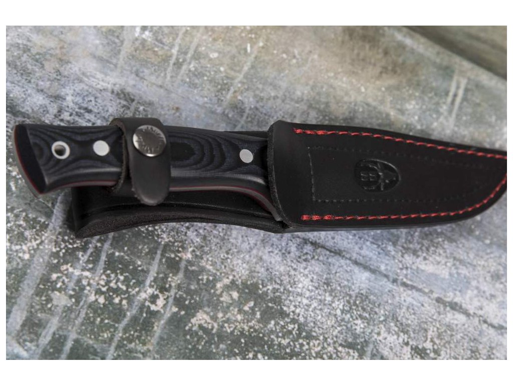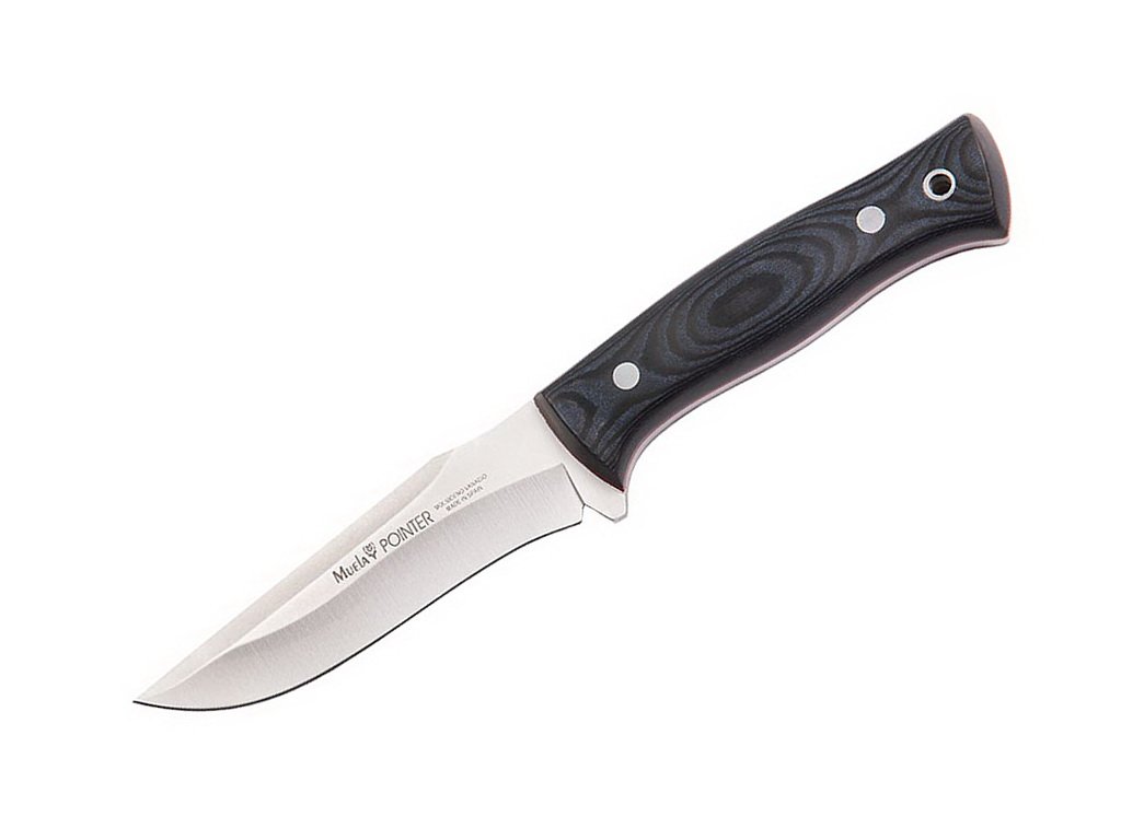Cuțitul de vânătoare Muela Pointer impresionează prin designul său. Rezistent, robust, cu construcție full tang, ideal pentru utilizare în timpul vânătorii, în aer liber sau pentru camping. Cuțitul este fabricat dintr-o singură bucată din oțel inoxidabil molibden-vanadiu 1.4116 (X50CrMoV15). Lama are un tăiș tip hollow grind și finisaj mat. Mânerul din micarta asigură o prindere fermă și sigură a cuțitului și are un orificiu pentru șnur. Mânerul este suficient de mare pentru a se potrivi bărbaților cu mâini mai mari. Cuțitul este livrat cu o teacă din piele de calitate.