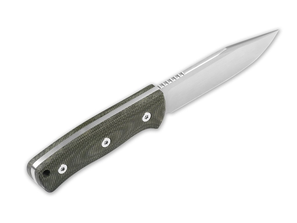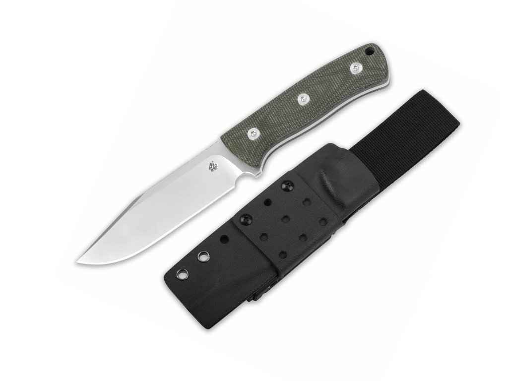 Cuțitul cu lama fixă QSP Bison este un cuțit de încredere fabricat din materiale de calitate. Lama este fabricată din oțel pentru unelte D2, are grosimea de 4 mm, o construcție full-tang, finisaj satinat și tăiș flat grind. Mânerul este din micarta, verde, cu textură fină, care ajută la prindere și este confortabil de ținut în timpul utilizării. Cuțitul este livrat cu o teacă din kydex, care poate fi fixată vertical sau orizontal, în funcție de preferințele și nevoile dumneavoastră.