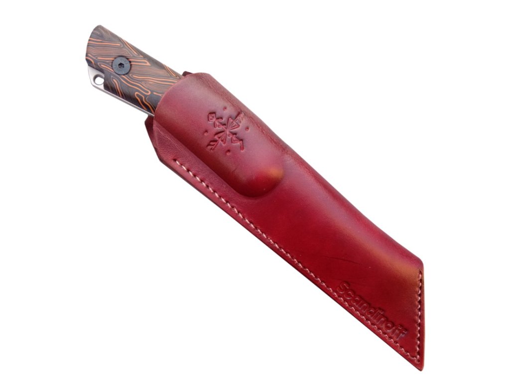 Mâner din G10 cu model colorat Nordic Woods. Teacă din piele ce se poate agăța la curea, realizată din piele de vită premium cu grosimea de 4 mm.