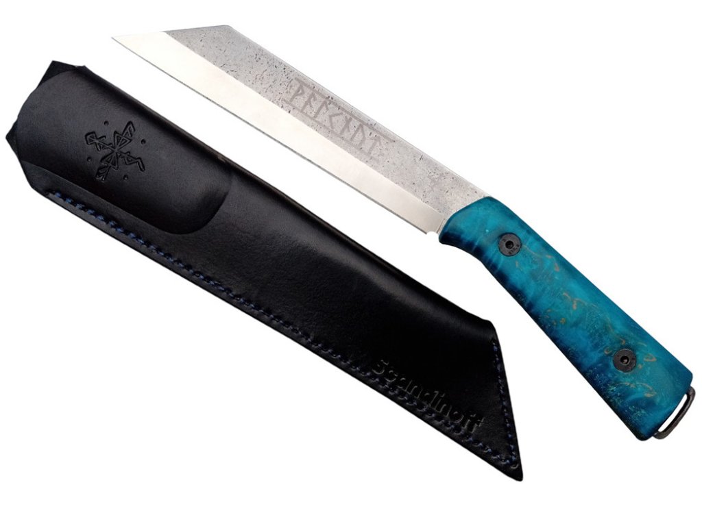 Mânerul este fabricat din lemn de mesteacăn stabilizat de culoare albastră. Mesteacănul este utilizat în mod tradițional la fabricarea cuțitelor scandinave. Este popular pentru modelul său frumos, durabilitate și prindere confortabilă. Uneori este denumit și mesteacăn karelian.