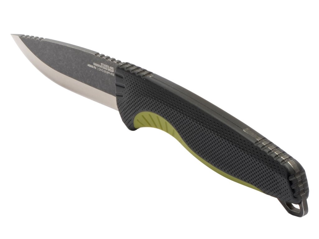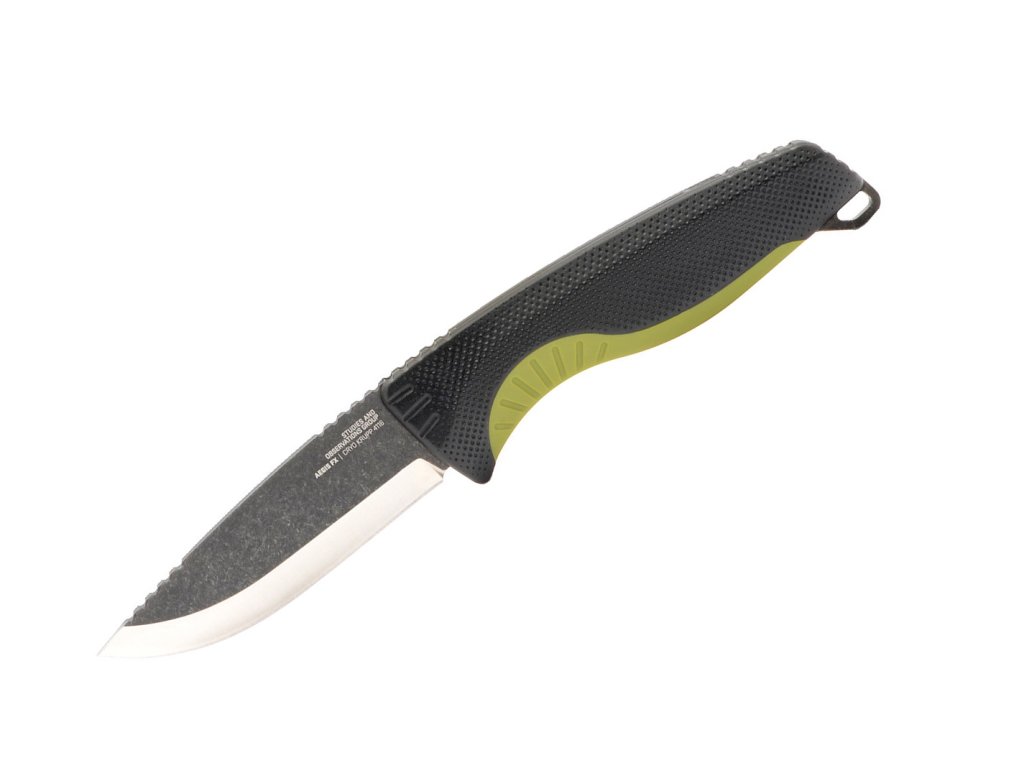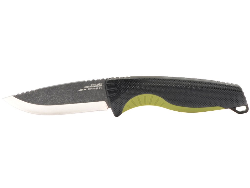 Aegis FX este un cuțit cu lamă fixă, un partener de încredere pentru orice provocare în aer liber, care își face treaba perfect. Lama sa din oțel inoxidabil CRYO 4116 Krupp rezistent la coroziune își păstrează ascuțimea pentru o lungă perioadă de timp. Lama are o formă drop point, finisaj stonewash și măsoară 9,4 cm, cu o grosime de 3,6 mm. Lungimea totală a cuțitului este de 22 cm, cu o greutate totală de 133 g. Are o teacă reglabilă compatibilă cu toate sistemele de montare. Mânerul GRN cu suprafață ergonomică cauciucată oferă o prindere confortabilă, care asigură confortul chiar și cu diferite tipuri de prindere și, prin urmare, este ușor de manevrat. Cuțitul este disponibil în culorile negru și verde. Cuțitul este livrat cu o teacă UMS din plastic întărit.