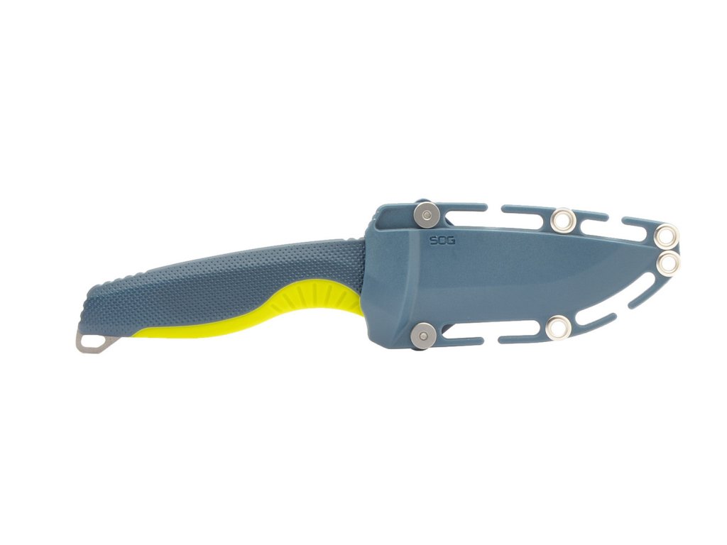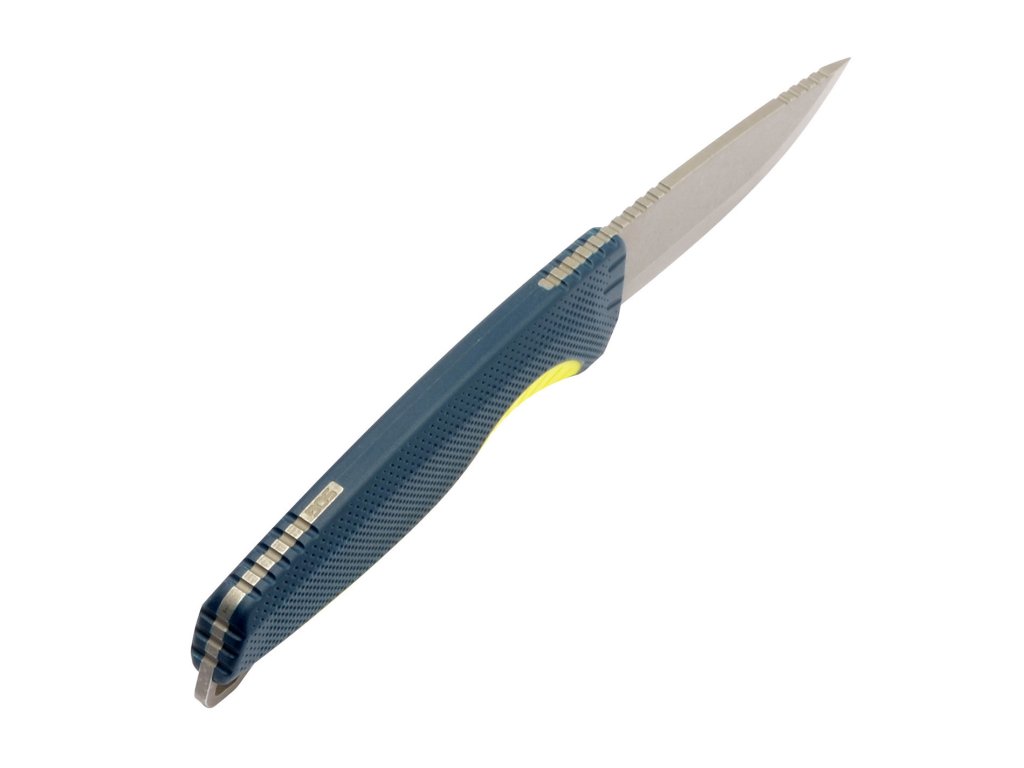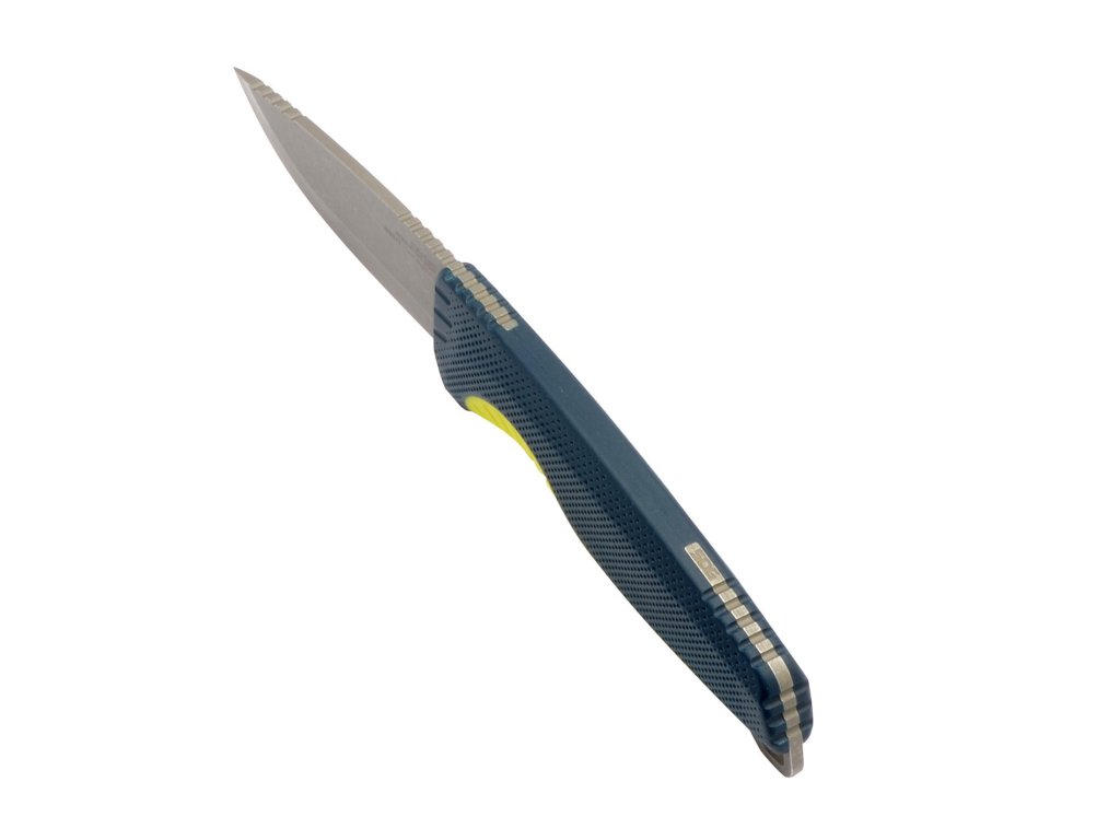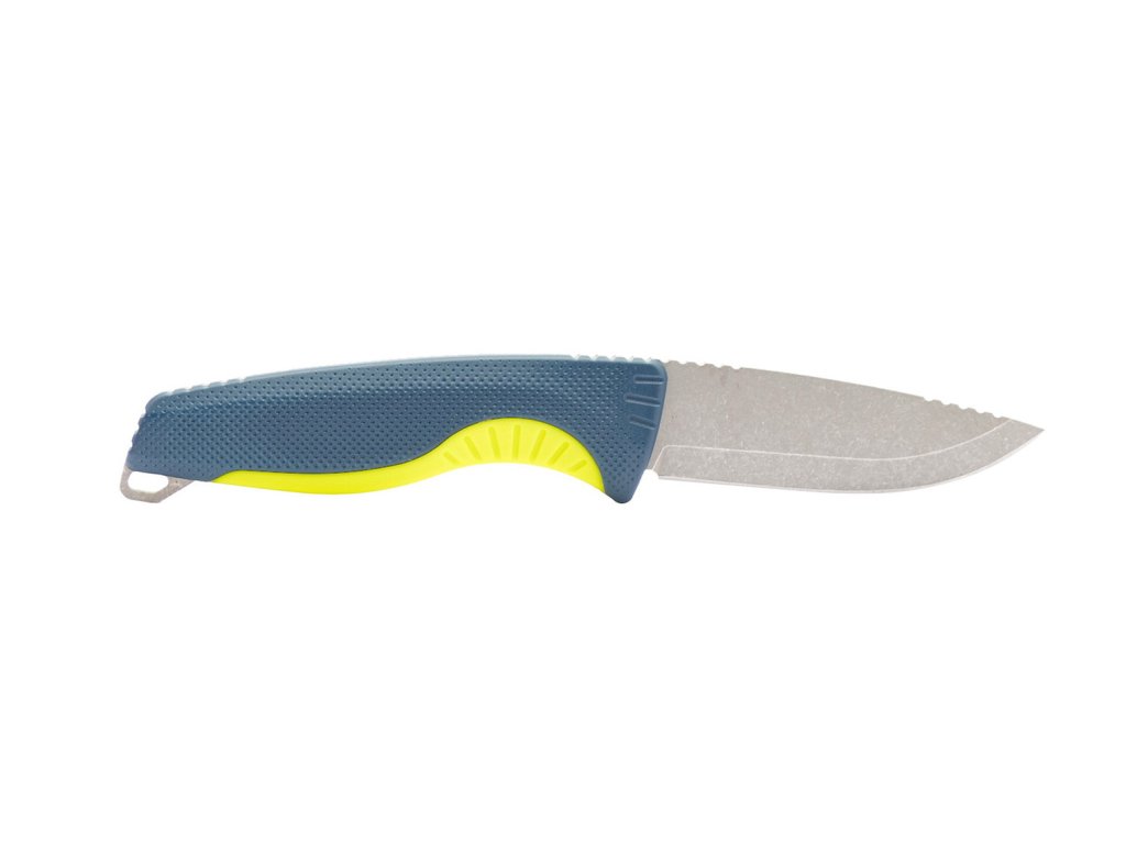 Aegis FX este un cuțit cu lamă fixă, un partener de încredere pentru orice provocare în aer liber, care își face treaba perfect. Lama sa din oțel inoxidabil CRYO 4116 Krupp rezistent la coroziune își păstrează ascuțimea pentru o lungă perioadă de timp. Lama are o formă drop point, finisaj stonewash și măsoară 9,4 cm, cu o grosime de 3,6 mm. Lungimea totală a cuțitului este de 22 cm, cu o greutate totală de 133 g. Are o teacă reglabilă compatibilă cu toate sistemele de montare. Mânerul GRN cu suprafață ergonomică cauciucată oferă o prindere confortabilă, care asigură confortul chiar și cu diferite tipuri de prindere și, prin urmare, este ușor de manevrat. Cuțitul este disponibil în culorile indigo și galben. Cuțitul este livrat cu o teacă UMS din plastic întărit.