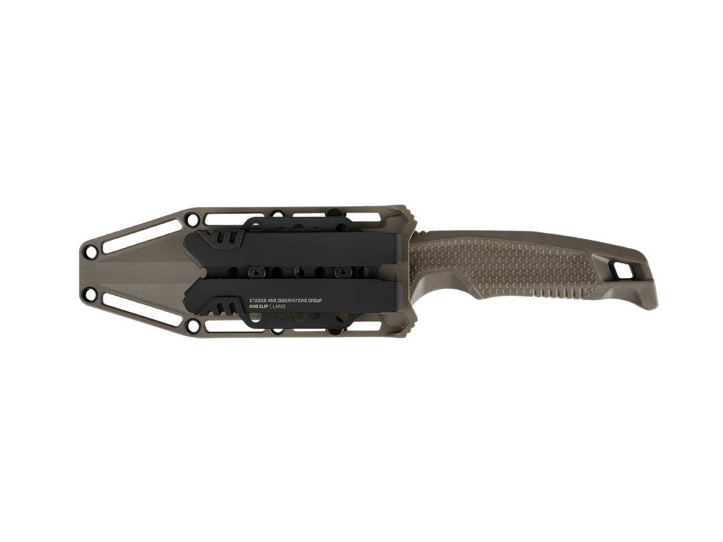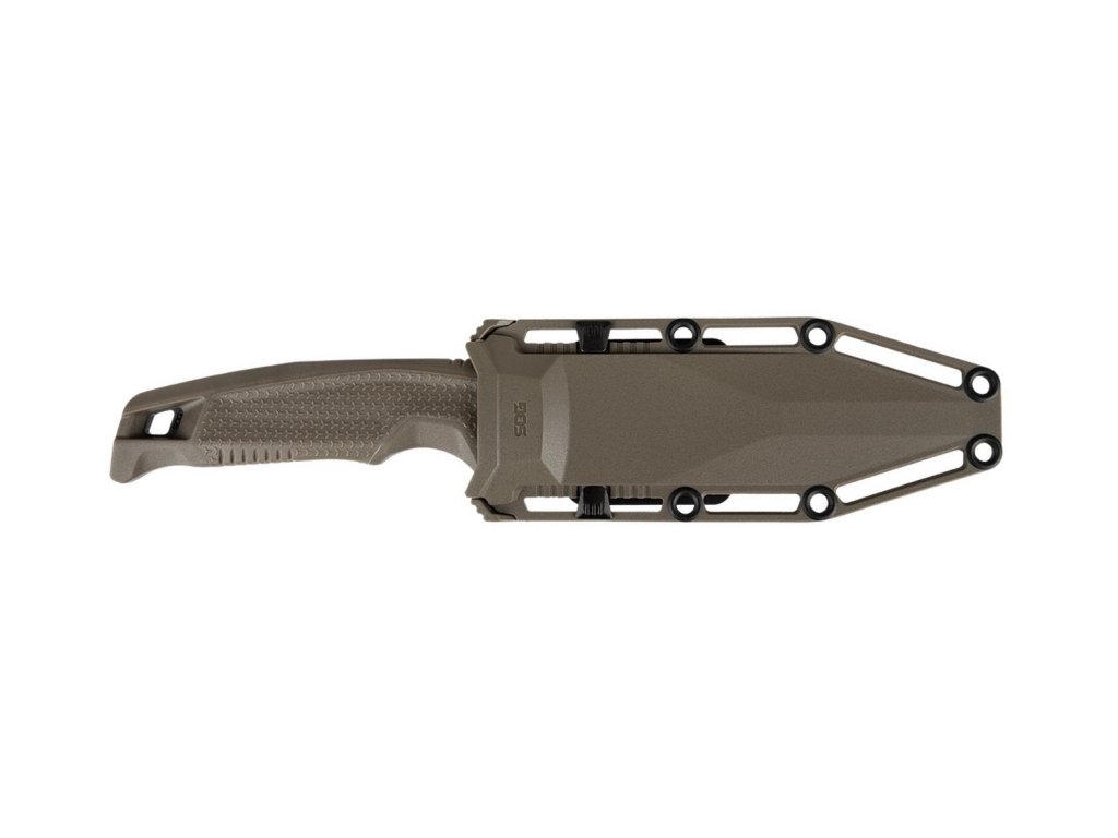Cuțitul SOG Recondo FX a fost fabricat conform cerințelor utilizatorilor profesioniști în uniformă. Datorită lamei fixe și construcției full tang, Recondo poate fi utilizat drept cuțit de supraviețuire, tactic și outdoor. Lama din oțel inoxidabil CRYO 440C, are lungimea de 11,93 cm și finisaj din nitrură de titan, care include și o parte parțial zimțată, potrivită pentru tăierea frânghiilor. Mânerul presat din cauciuc, de culoare nisipului, permite o prindere optimă în orice mediu și în orice condiții. Cuțitul este livrat cu o teacă neagră din kydex UMS (universal mounting system) de la SOG. Teaca oferă posibilitatea de a alege câtă forță trebuie să fie exercitată pentru a scoate cuțitul și vine cu alte opțiuni pentru a-l regla exact în funcție de activitatea pentru care veți folosi cuțitul.