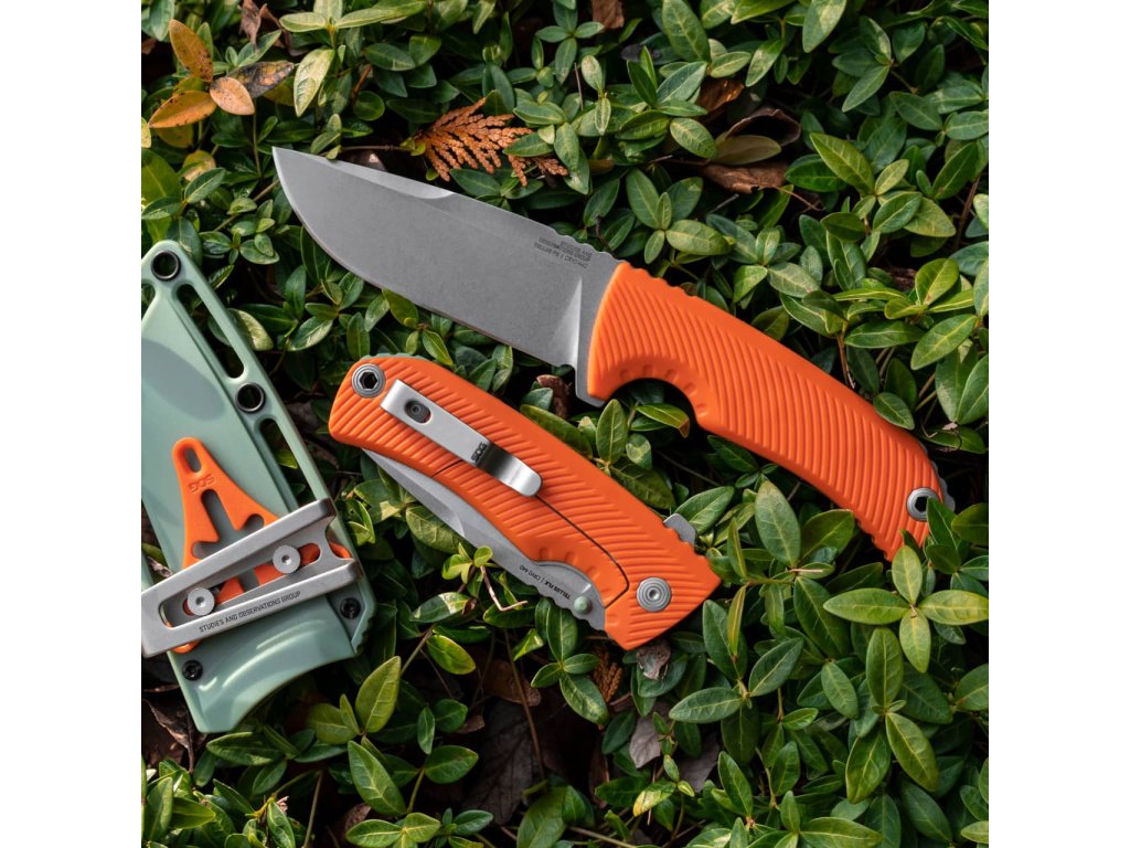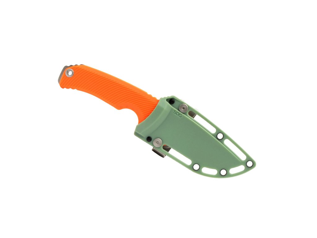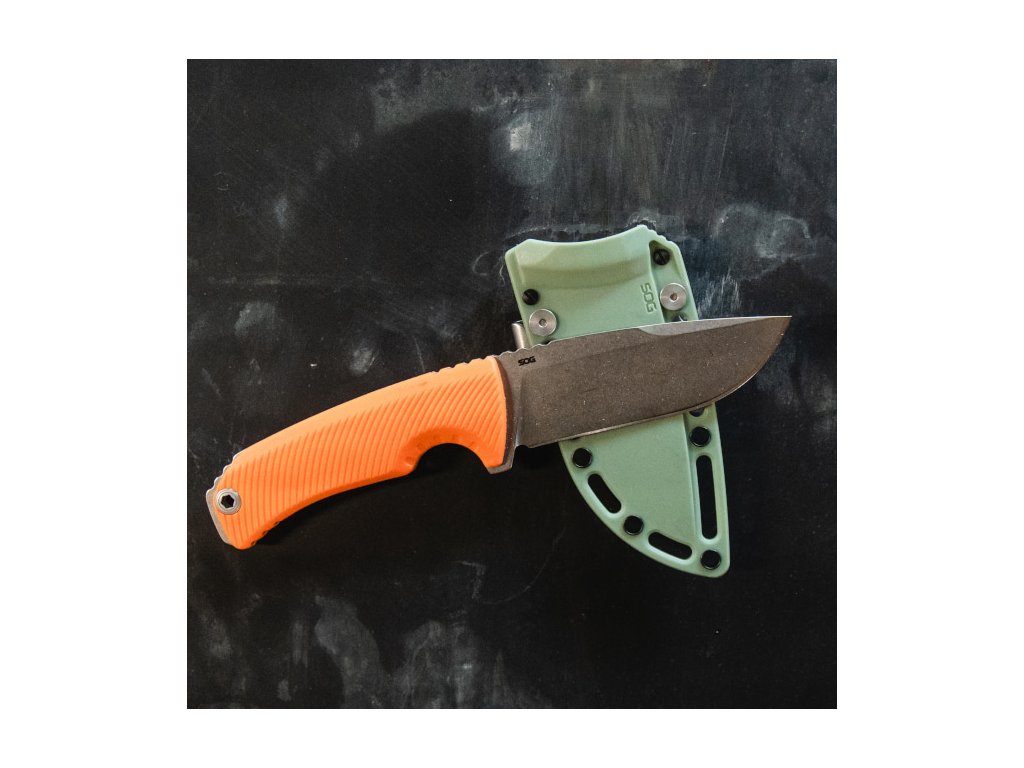 Tellus FX – Blaze este un instrument util pentru diverse activități de supraviețuire în natură. La fel ca toate cuțitele SOG din seria Tellus FX, Blaze are o lamă fixă cu o construcție full tang. Lamă clip point este fabricată din oțel inoxidabil CRYO 440C, cu finisaj stonewash și are o lungime de 10,5 cm. Nylonul este un material foarte popular pentru mânerele cuțitelor. Nylonul are o rezistență foarte bună la impact, stabilitate la temperaturi ridicate, rezistență și inerție chimică. Toate aceste proprietăți au fost îmbunătățite prin adăugarea de fibră de sticlă, creând un nou material – nailon armat cu sticlă (GRN). Mânerul este de culoare portocaliu aprins. Pachetul include și o teacă compatibilă cu UMS. Teaca încorporează cele mai bune caracteristici ale sistemului universal de atașare SOG.