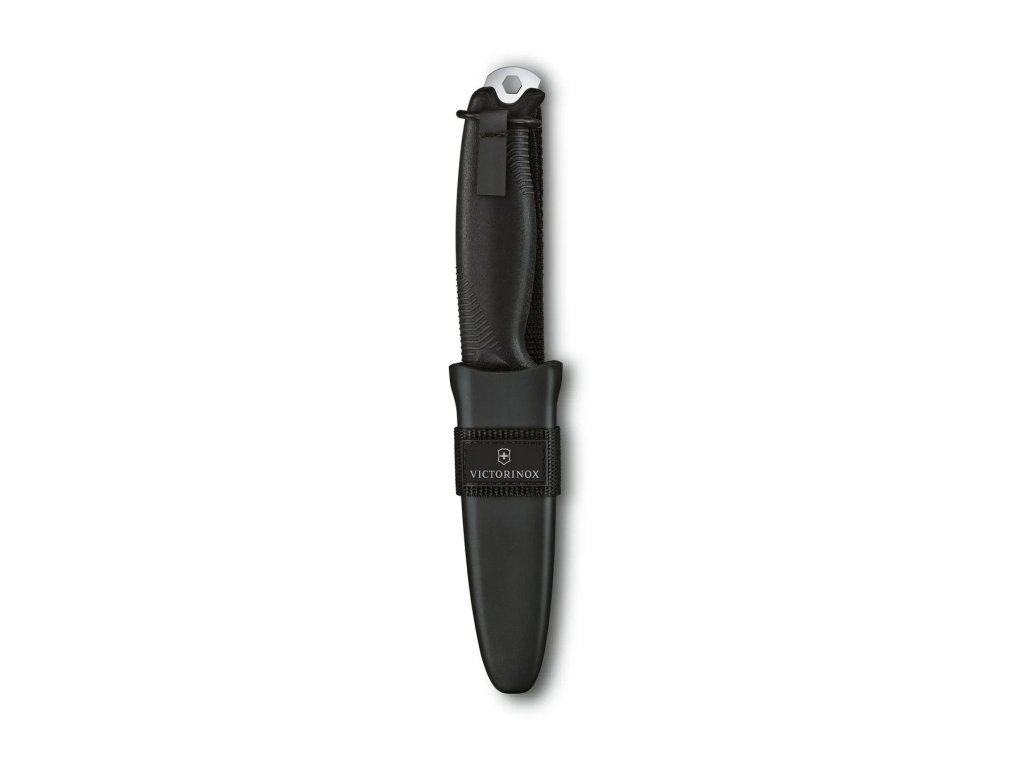 Mâner din polimer termoplastic TPE de culoare neagră cu sigla producătorului Victorinox gravată pe el. Nu va aluneca din mână și este foarte durabil, fiind potrivit pentru toate condițiile. La capătul mânerului, iese în evidență cu o gaură hexagonală distinctă. Îl puteți folosi pentru a răzui scoarța atunci când aprindeți un foc. Această gaură hexagonală este compatibilă cu burghiul plan din Venture Pro Kit. De asemenea, o puteți folosi ca gaură pentru șnur.