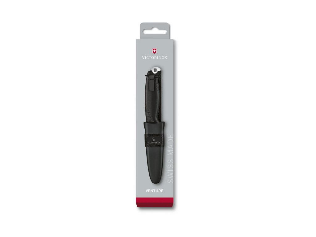 Vă prezentăm Victorinox Venture, un cuțit cu lamă fixă cu construcție full tang! Venture se remarcă ca o unealtă remarcabilă în domeniul echipamentului pentru aventuri. Un instrument fiabil creat de pasionați de activități în aer liber cu experiență, ce face față fără probleme oricărei sarcini.
