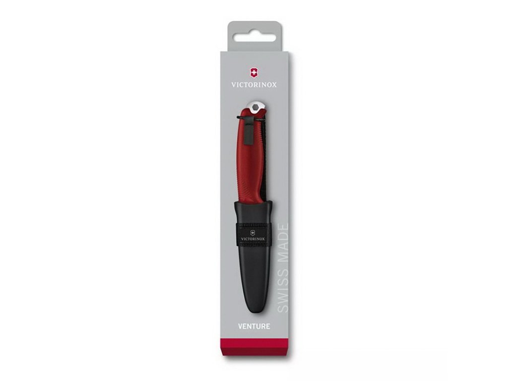 Vă prezentăm Victorinox Venture, un cuțit cu lamă fixă cu construcție full tang! Venture se remarcă ca o unealtă remarcabilă în domeniul echipamentului pentru aventuri. Un instrument fiabil creat de pasionați de activități în aer liber cu experiență, ce face față fără probleme oricărei sarcini.