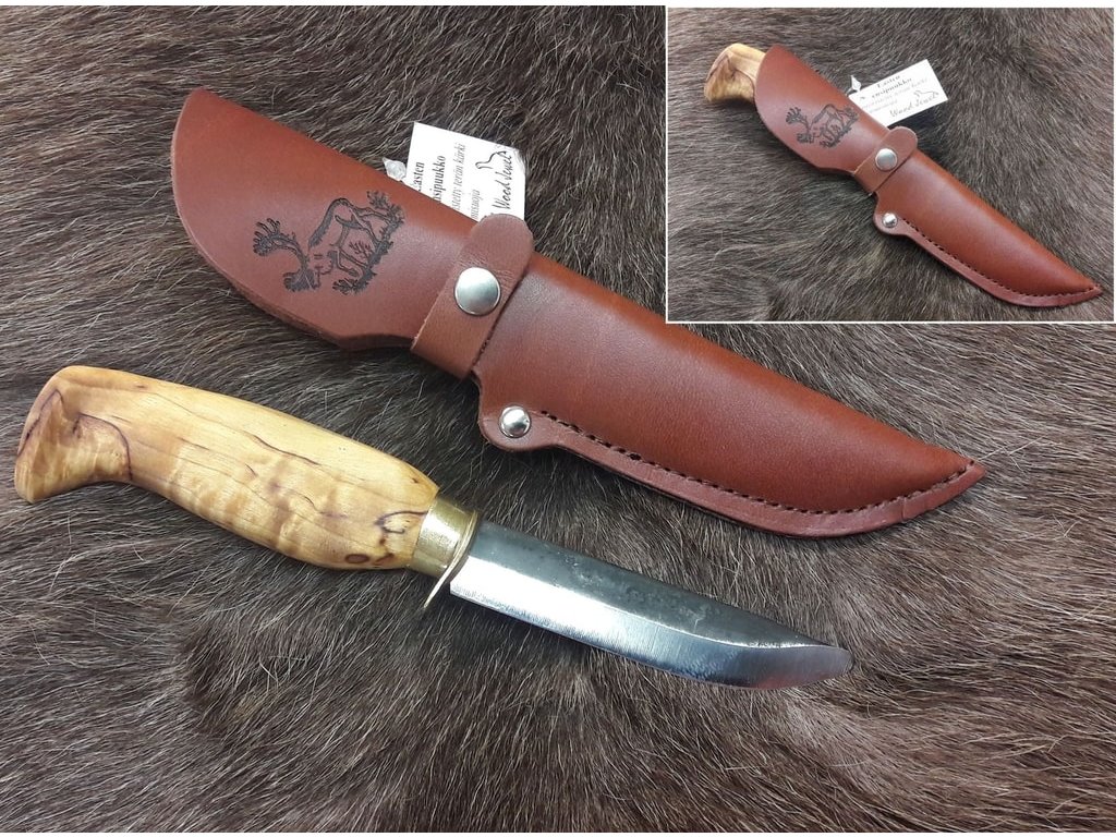 Cuțitul Wood Jewel Lasten ensipuukko cu designul și dimensiunea sa este conceput special pentru copii. Cuțitul are caracteristici distinctive de siguranță cum ar fi un vârf rotunjit al lamei și o protecție distinctivă a mâinii care împiedică alunecarea mâinii pe lamă. Cuțitul corespunde versiunii clasice pentru adulți, dar în multe feluri se adaptează la nevoile micilor prieteni Lama din oțel carbon 80CrV2 are o lungime de 8,5 cm. Cuțitul are un mâner din lemn de mesteacăn creț și este livrat cu o teacă din piele.
